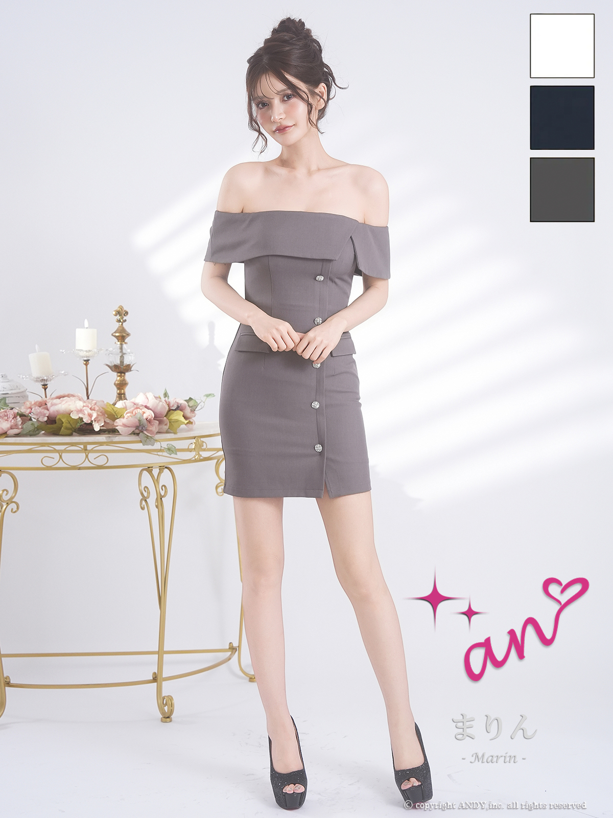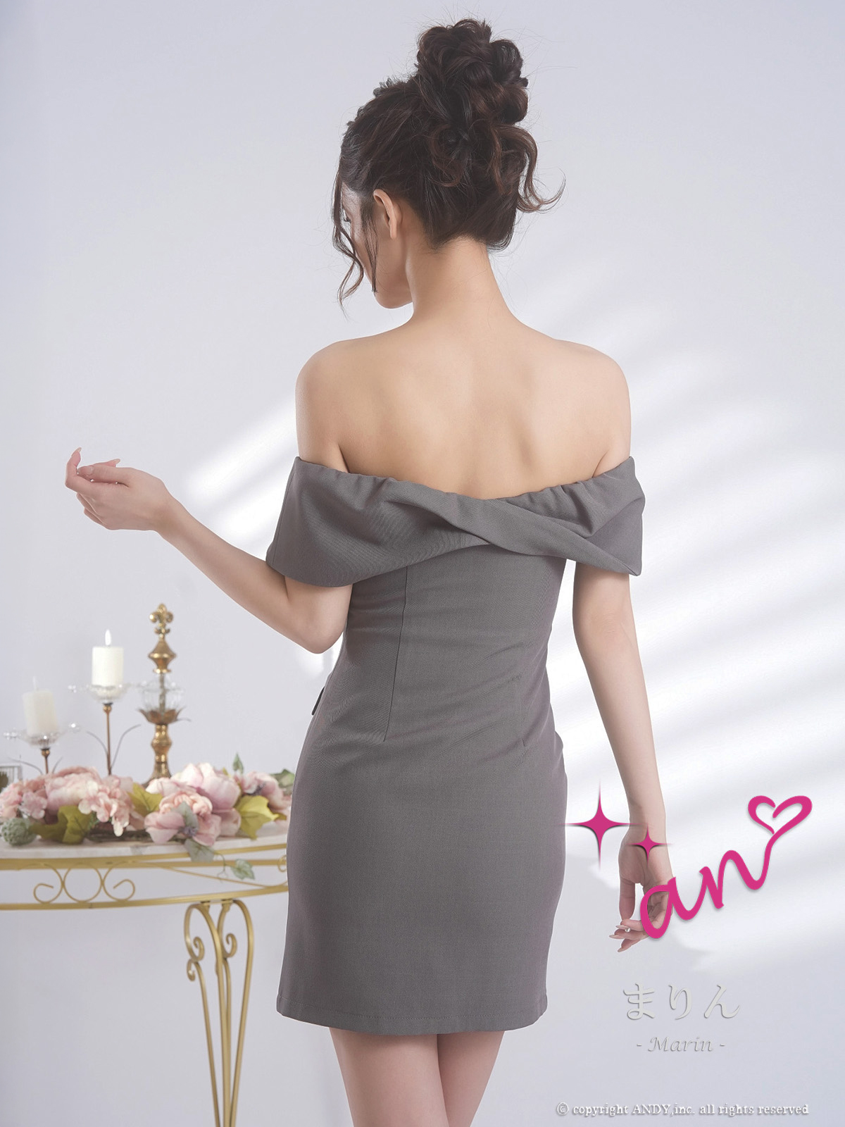 XSサイズあり【an /アン】リボンブローチ付/ オフショル/ ビジューボタン/ タイト/ シンプル/ ワンカラー/ ミニドレス/ キャバドレス[OF05] [AOC4001-GY-2601]