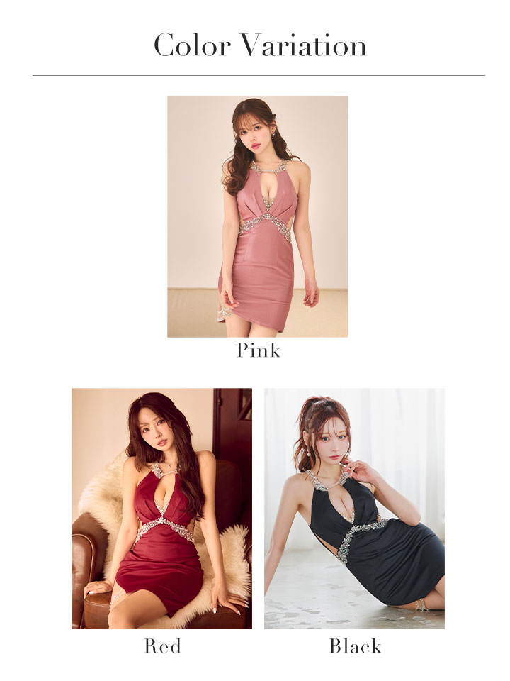 XSサイズあり【ANGEL R/エンジェルアール】ネックチェーン/ マストカット/ タック/ ビジュー/ タイト/ ミニドレス/ キャバドレス[OF2] [AR24240-P-S260115]
