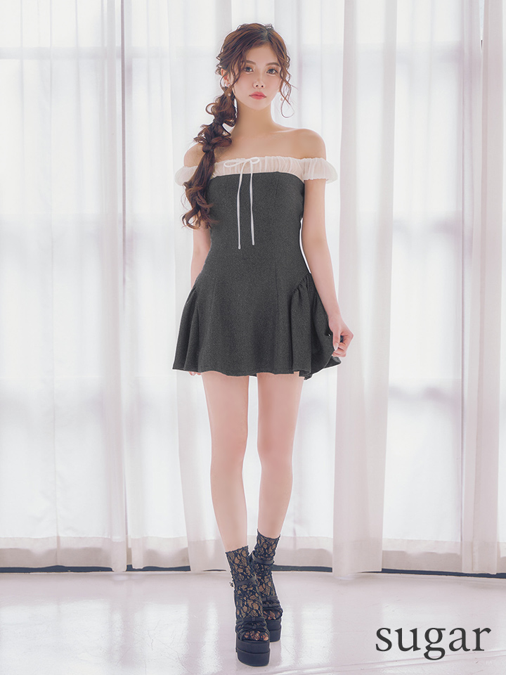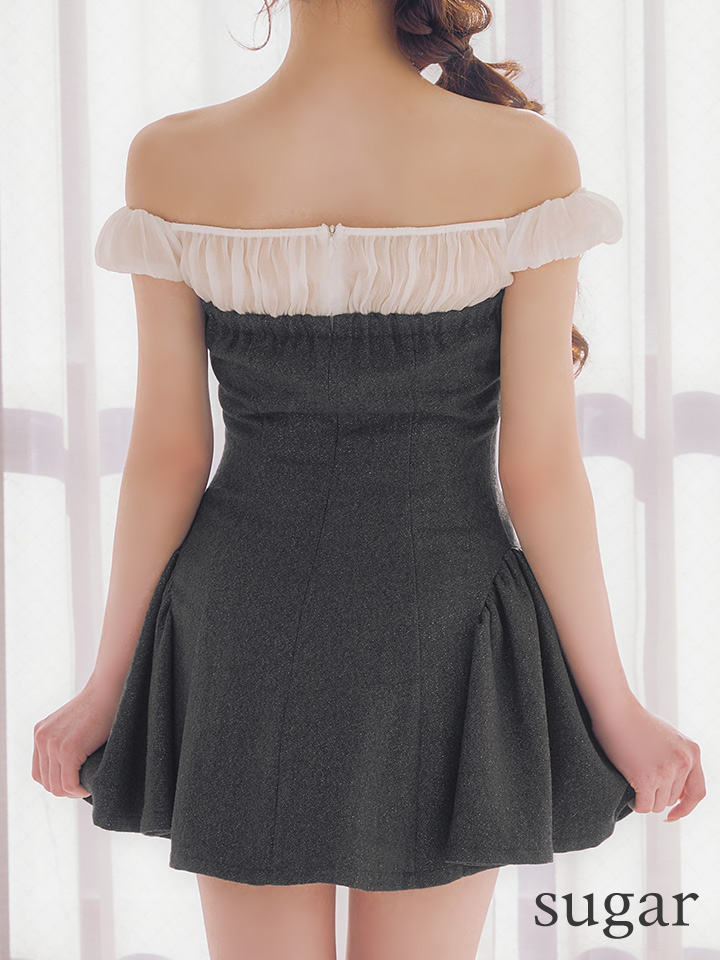 - > XSサイズあり【ANIER./アニエル】【ROBE de FLEURS/ローブドフルール】Glitter flannel off-the-shoulder mini dress/ グリッター/ フランネル/ オフショルダー/ ミニドレス/ キャバドレス[OF08]