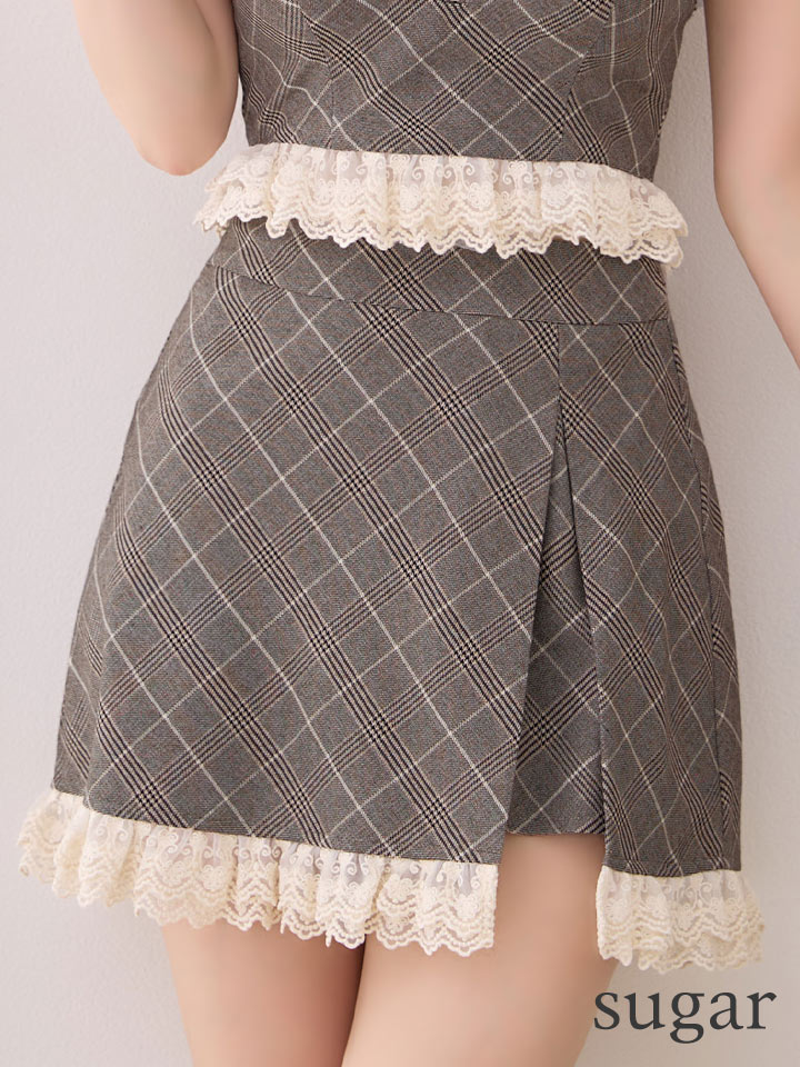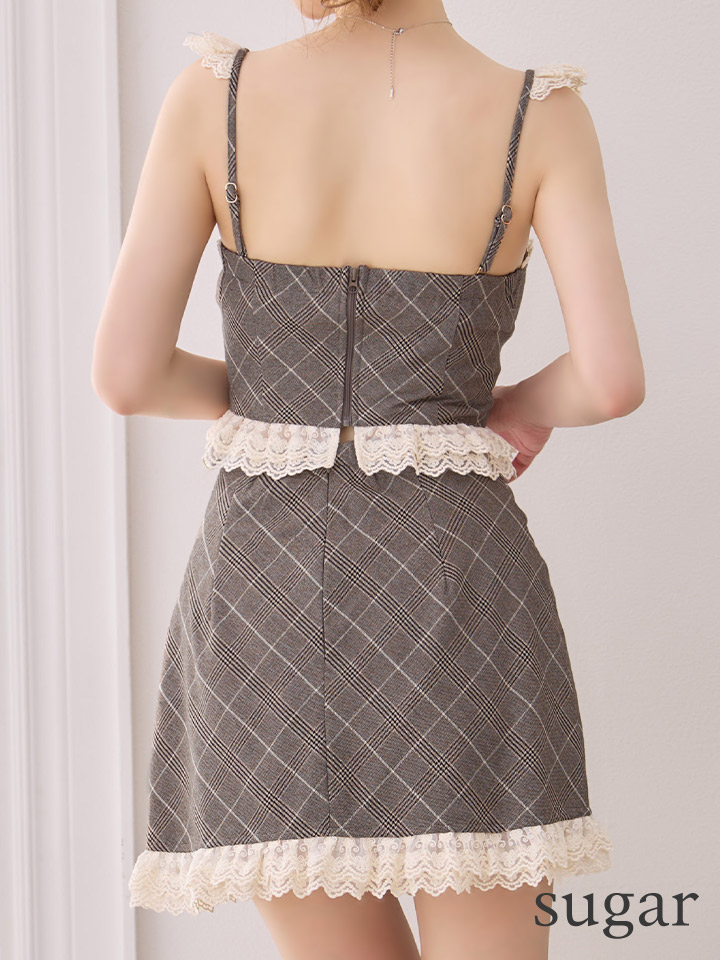 - > XSサイズあり【an/アン】チェック柄/ レースフリル/ バストジップ/ キャミソール/ アシンメトリー/ セットアップ/ フレア/ ミニドレス/ キャバドレス[OF05]