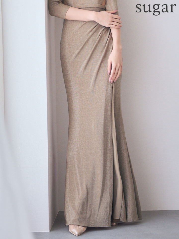 Lサイズあり【JEAN MACLEAN/ジャンマクレーン】ウエストカット/ バストカット/ スリット/ ラメニット/ タイト/ ロングドレス/ キャバドレス long[OF2A]