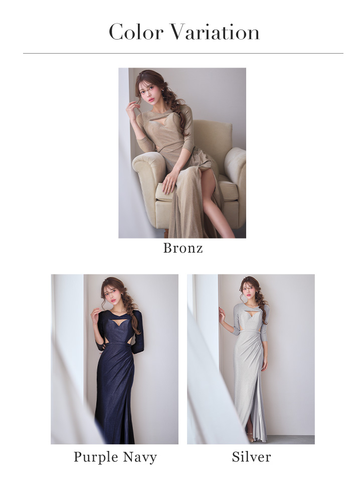 Lサイズあり【JEAN MACLEAN/ジャンマクレーン】ウエストカット/ バストカット/ スリット/ ラメニット/ タイト/ ロングドレス/ キャバドレス long[OF2A] [51001-JM-PLNV-S260116]