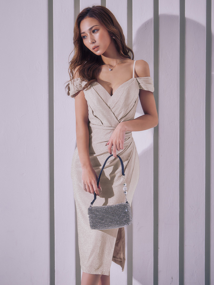 - > 【予約商品/1月下旬発送予定】【JEAN MACLEAN/ジャンマクレーン】ラメニット/ オフショルダー/ サイドタック/ ウエストマーク/ バストタック/ ストレッチ/ ひざ丈/ スリット/ タイト/ ミディアムドレス/ キャバドレス[OF2A]
