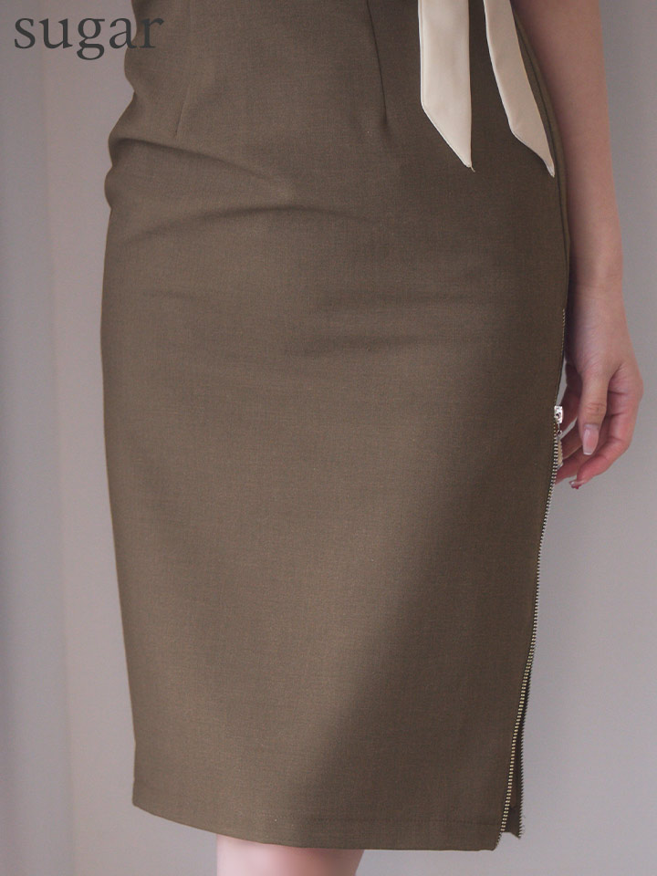 - > XSサイズあり【Veautt/ヴュート】【OF05】ウエストクロス/ バストタック/ リボン/ バイカラー/ チェーン/ サイドファスナー/ タイト/ ミディアムドレス/ キャバドレス