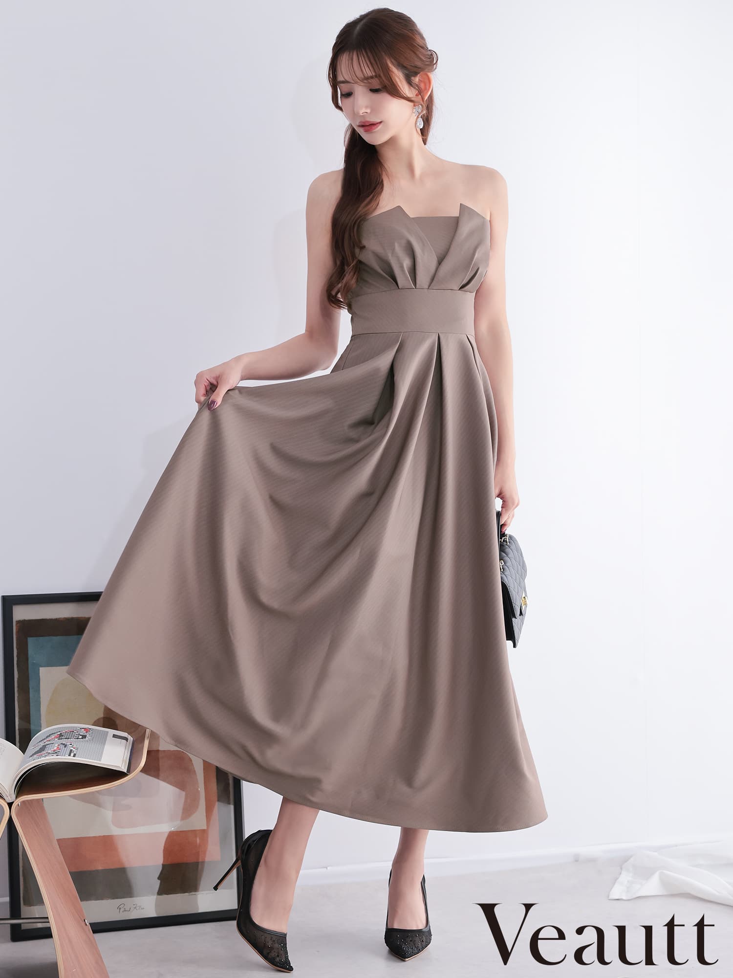 XSサイズあり【Veautt/ヴュート】【OF05】べアトップ/ バストタック/ ウエストマーク/ プリーツ/ フレア/ ワンピース/ ロングドレス/ キャバドレス [VT082602-MOC-2601]