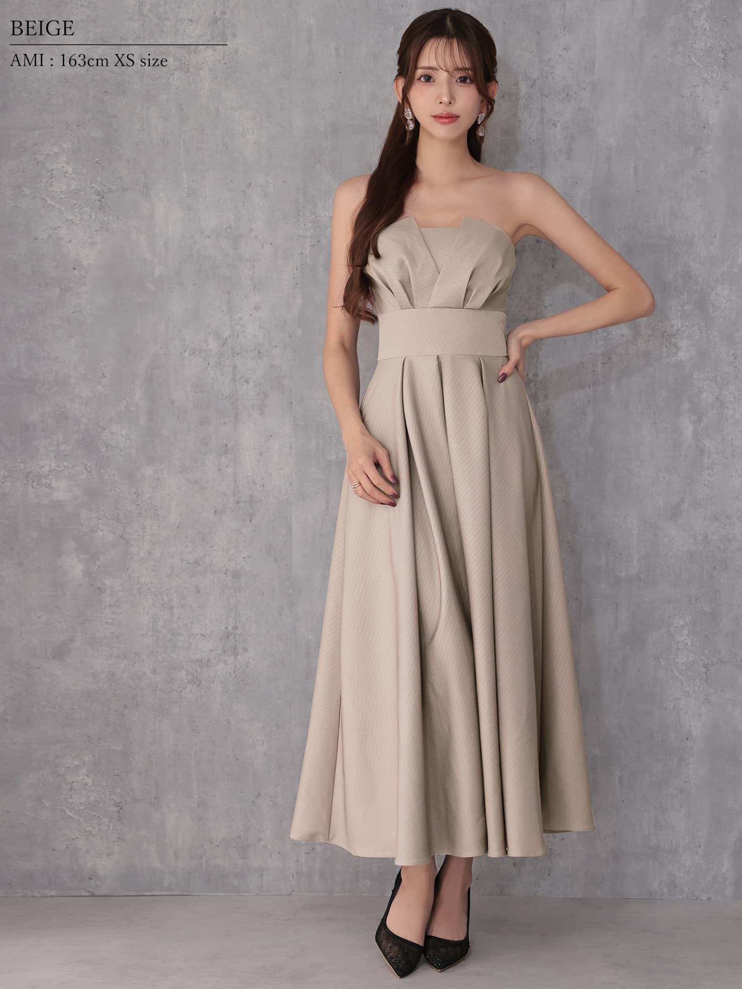XSサイズあり【Veautt/ヴュート】【OF05】べアトップ/ バストタック/ ウエストマーク/ プリーツ/ フレア/ ワンピース/ ロングドレス/ キャバドレス