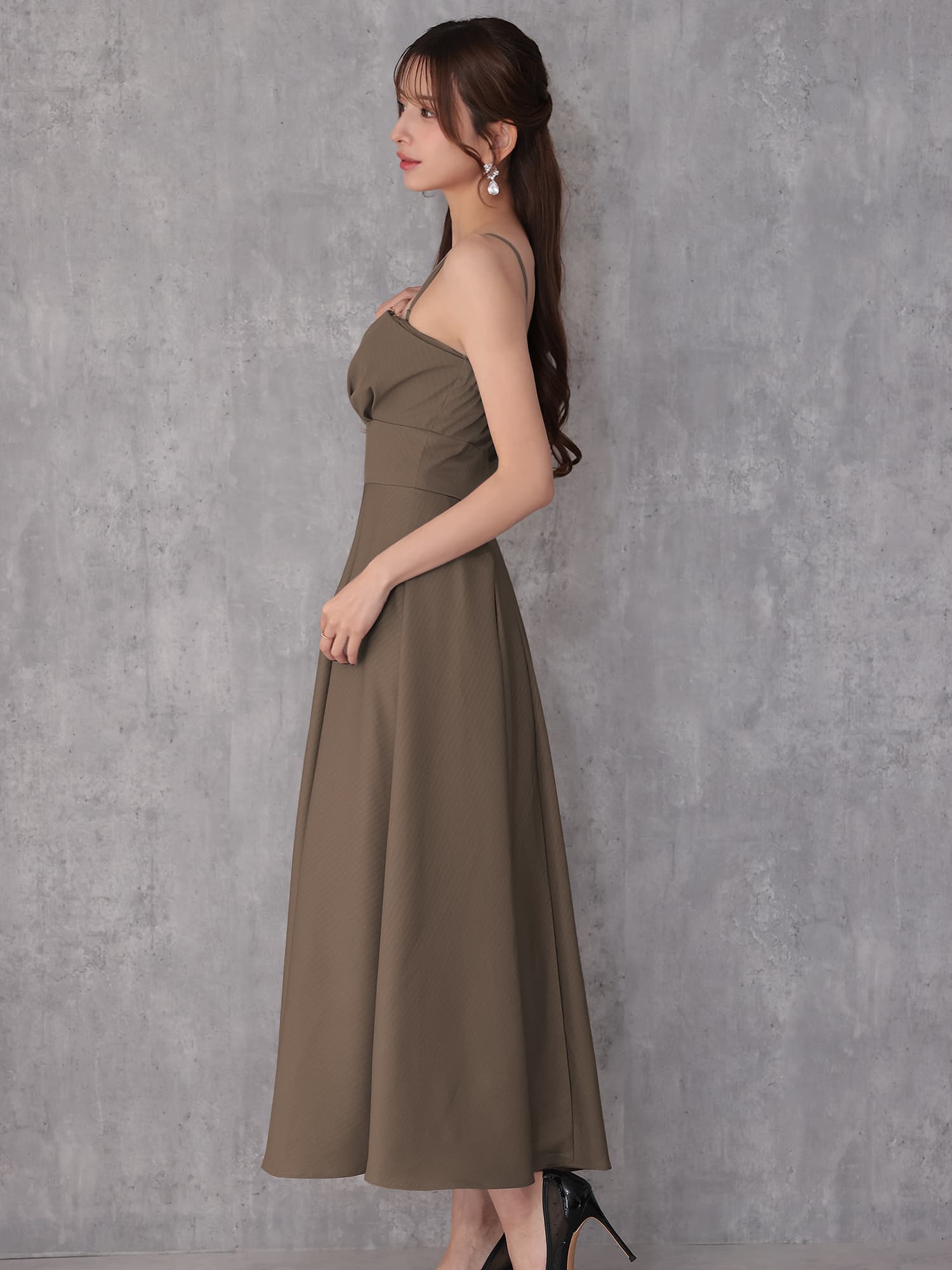 裾に向かって広がるフレアシルエットが、動くたびに上品な表情を演出します。