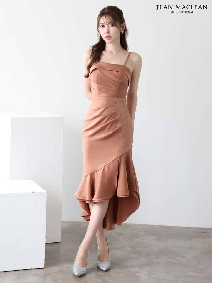 - > Lサイズあり【JEAN MACLEAN/ジャンマクレーン】サテン/ タック/ ワンカラー/ キャミ/ アシンメトリー/ マーメイド/ ミディアムドレス/ キャバドレス[OF2A]【一部予約商品/4月上旬発送予定】
