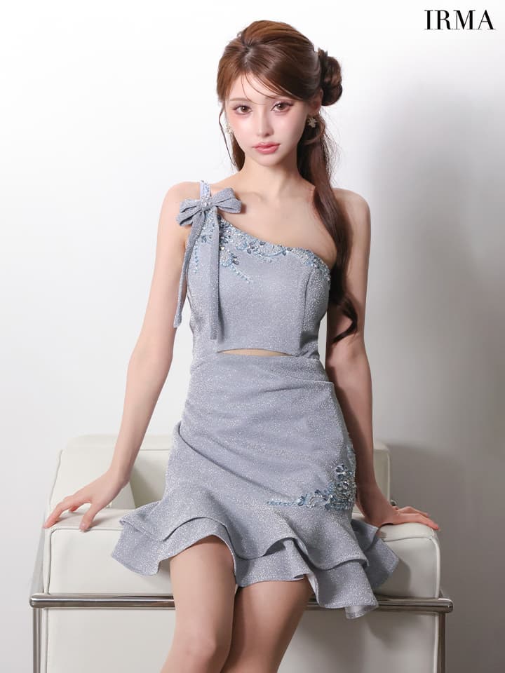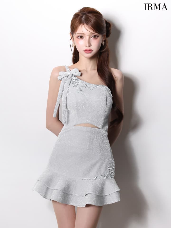 - > 【予約商品/1月下旬発送予定】 XSサイズあり【IRMA/イルマ】ラメニット/ リボン/ ワンショルダー/ ビーズ刺繍/ ティアードフリル/ フレア/ ウエストカット/ ストレッチ/ ミニドレス/ キャバドレス[OF2A]