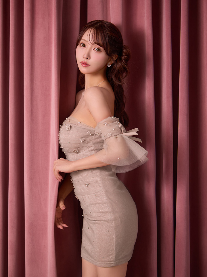 - > 【予約商品/1月下旬発送予定】XSサイズあり【ANGEL R/エンジェルアール】ベアトップ/ フレアスリーブ/ フラワー/ メッシュ/ リボン/ タイト/ ミニドレス/ キャバドレス[OF2]
