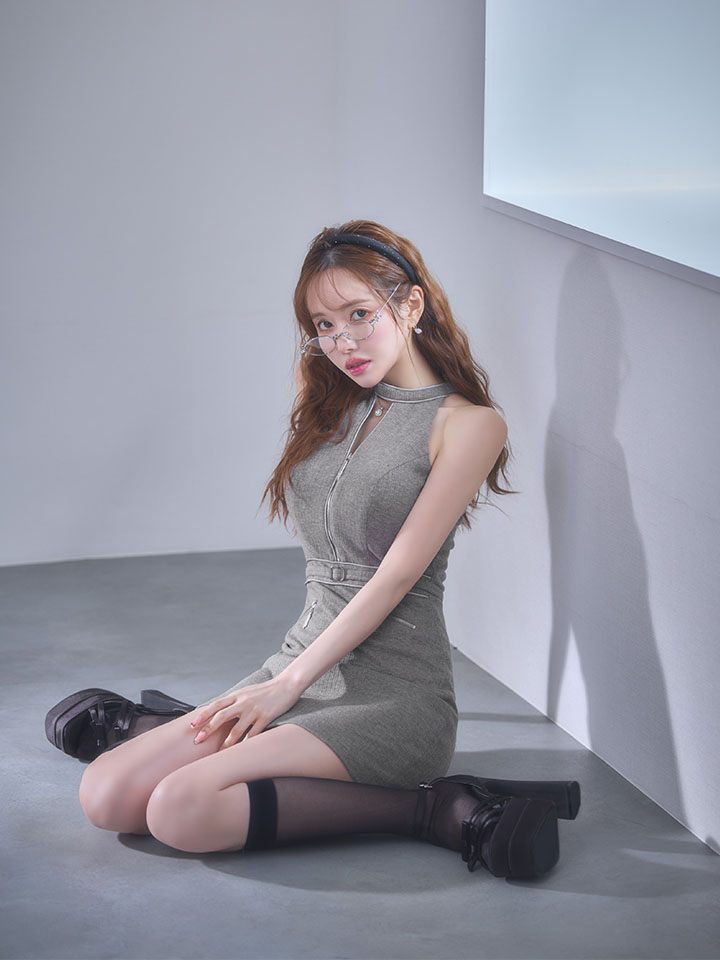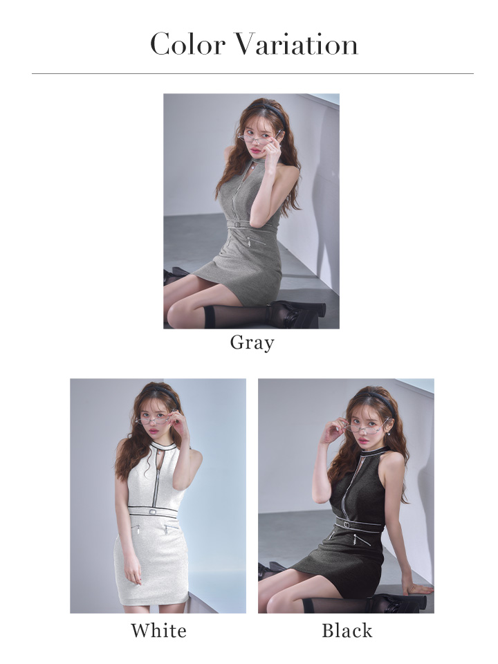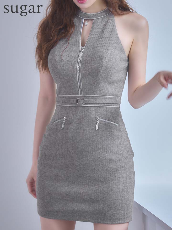 XSサイズあり【IRMA/イルマ】ラメニット/ ビジュー/ リブ/ ハイネック/ カットアウト/ バストジップ/ ウエストマーク/ ストレッチ/ タイト/ ミニドレス/ キャバドレス[OF2A] [61016-IR-GY-S260121]