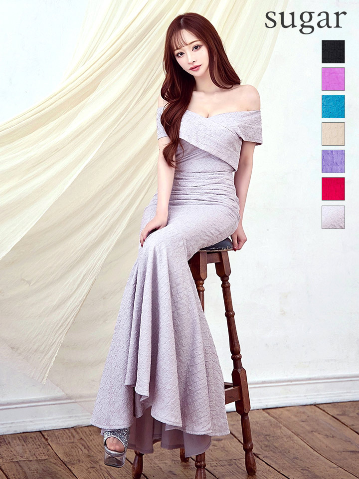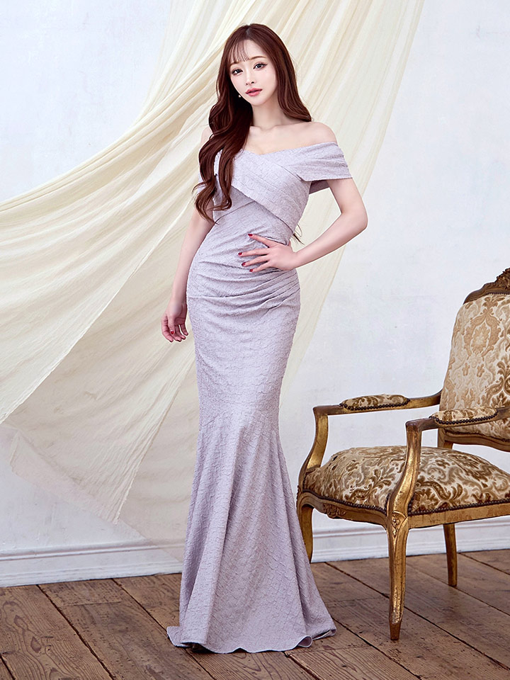 大胆なオフショルデザインが目を惹くマーメイドロングドレス♡