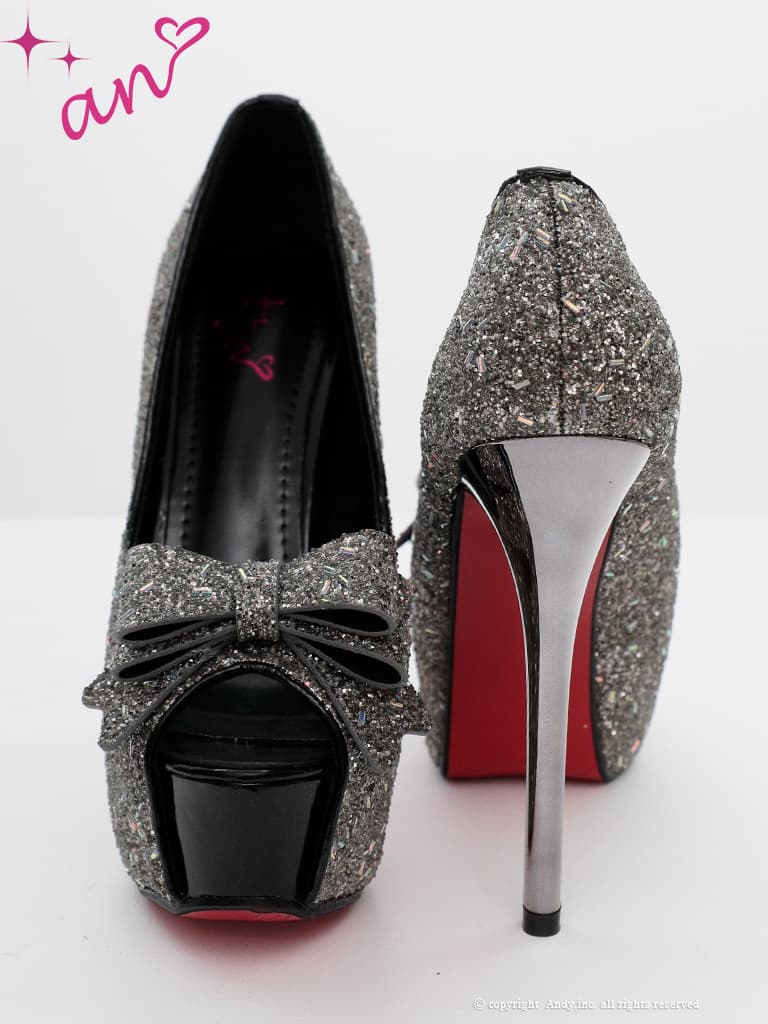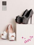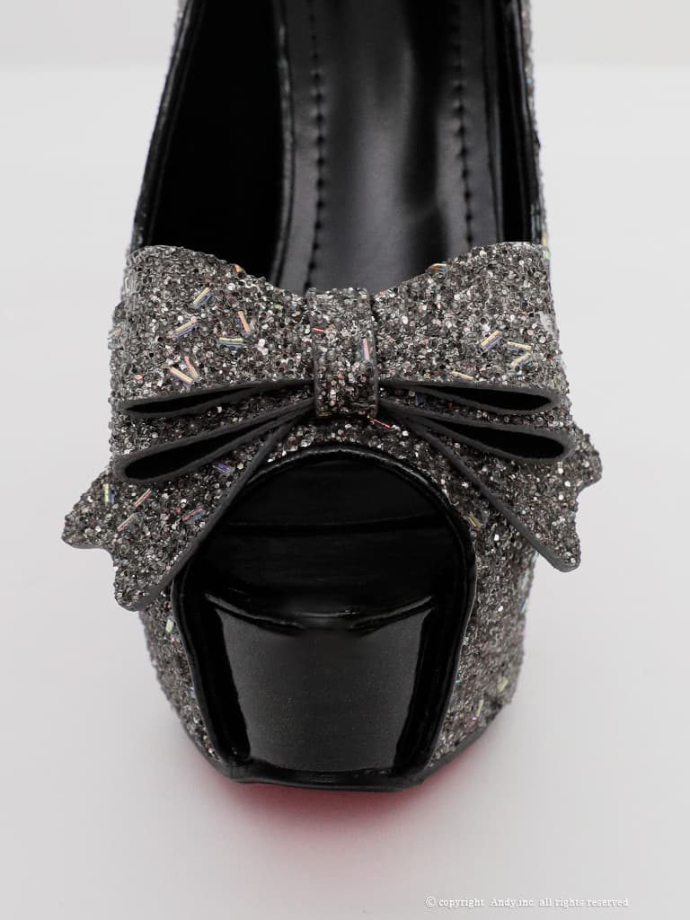 【an】2color/ 14cmヒール/ リボン/ グリッター/ ラメ/ ハイヒール/ ピンヒール/ オープントゥパンプス [OF02] [AOC-SH057-W-2601]