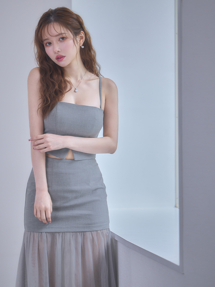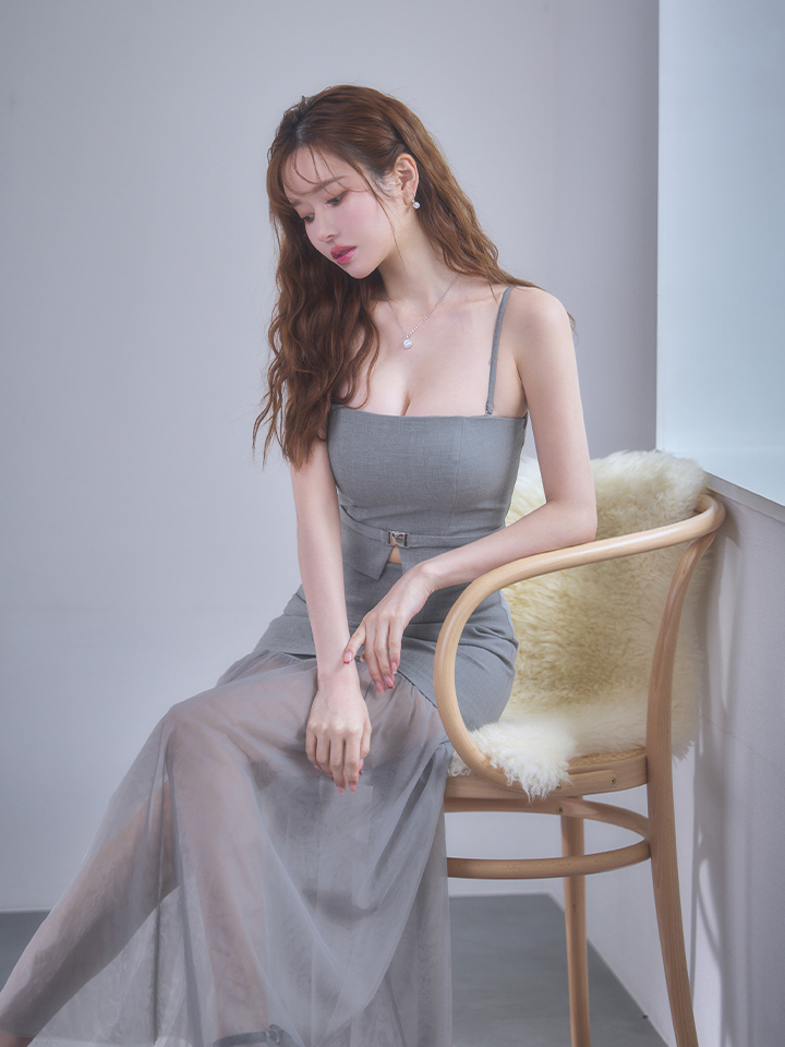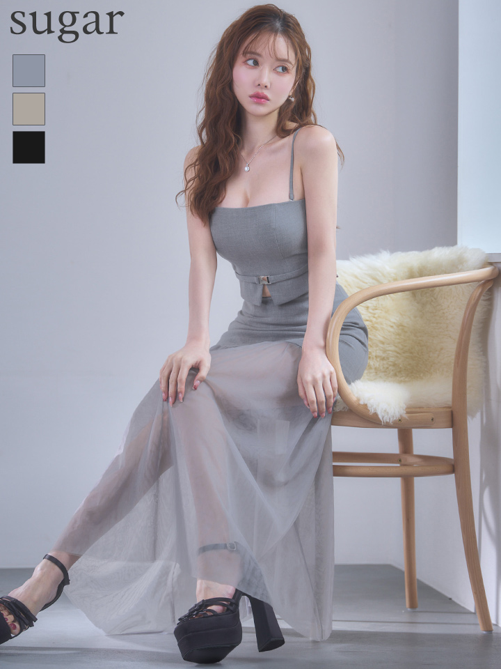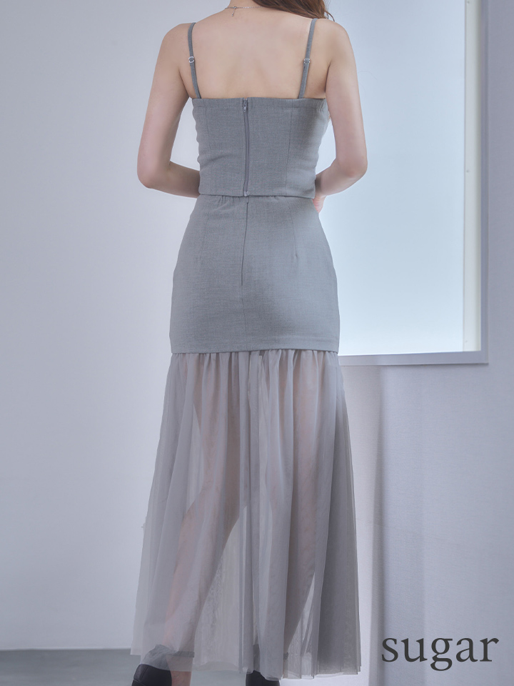 【予約商品/1月下旬発送予定】XSサイズあり【Glossy/グロッシー】シアー/ チュール/ ドッキング/ セットアップ/ フレア/ ワンピース/ ロングドレス/ キャバドレス[OF08] [GL3489-GY-S260121]