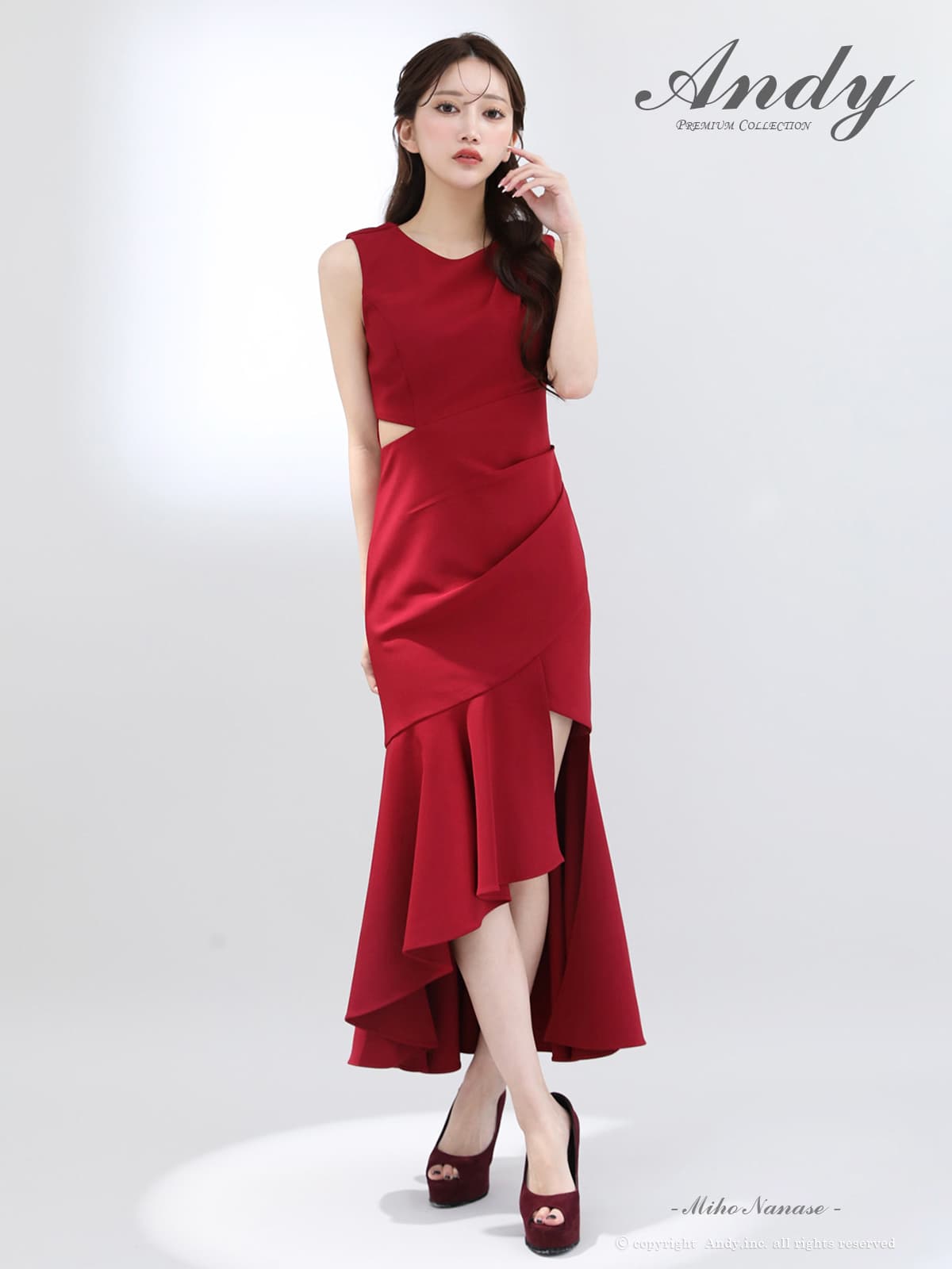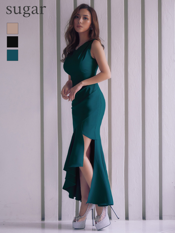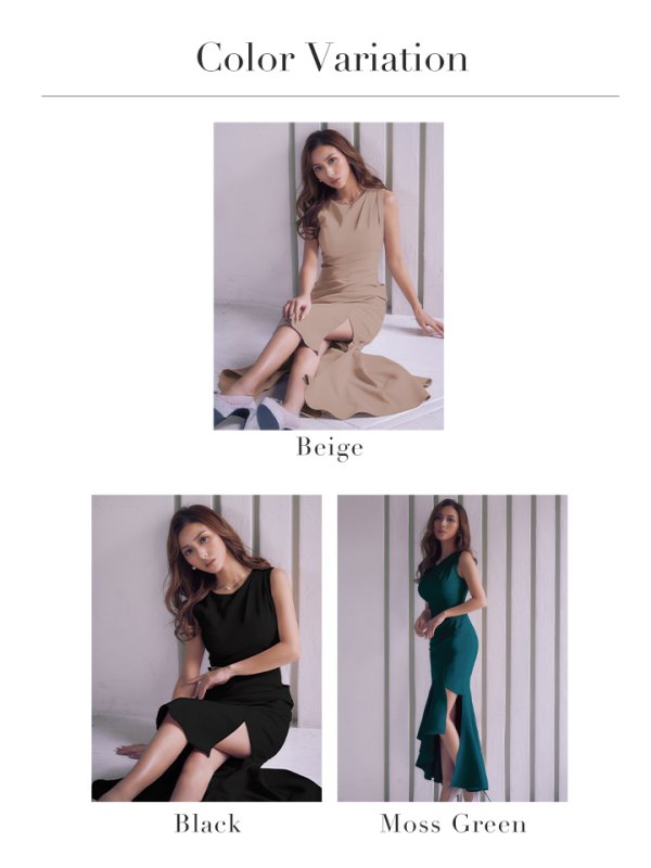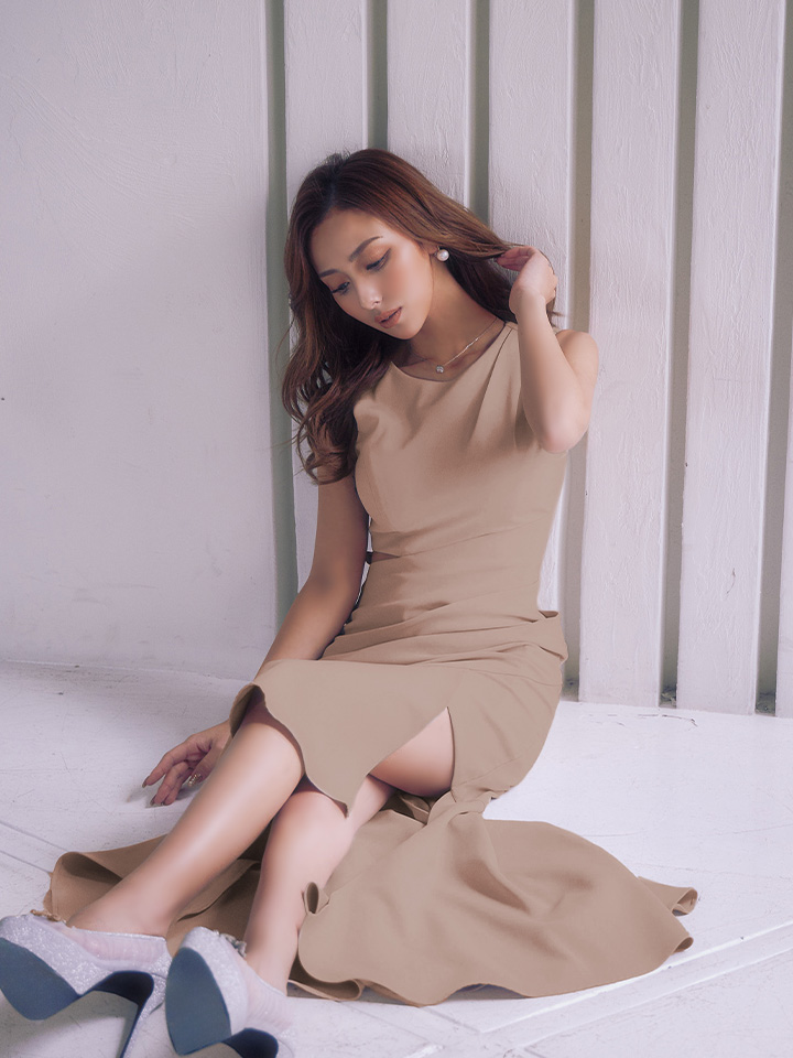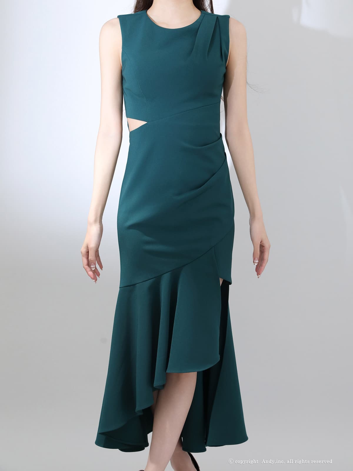 - > 【ANDY/アンディ】ウエストカット/ アシンメトリー/ ノースリーブ / フリル/ テールカット/タック/ ミディアムドレス/ キャバドレス[OF05]