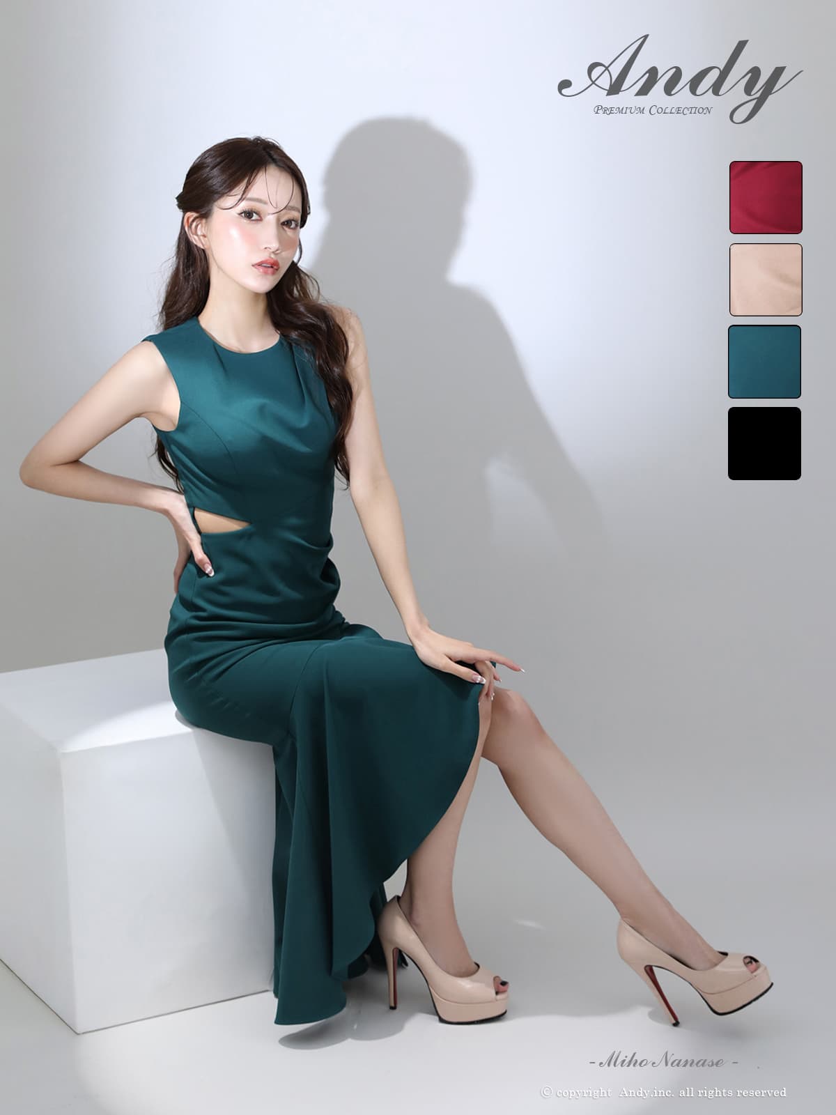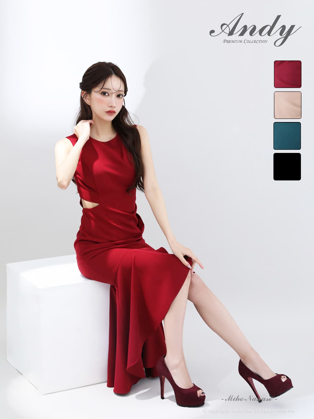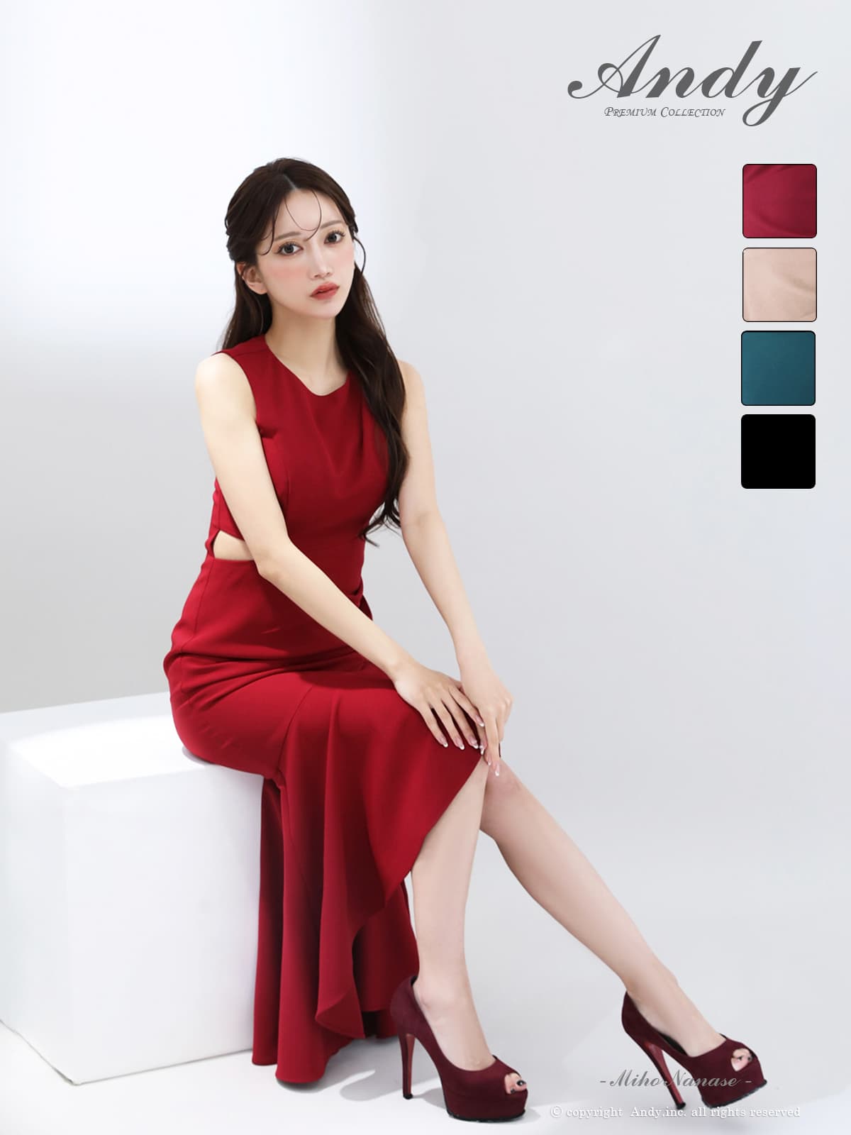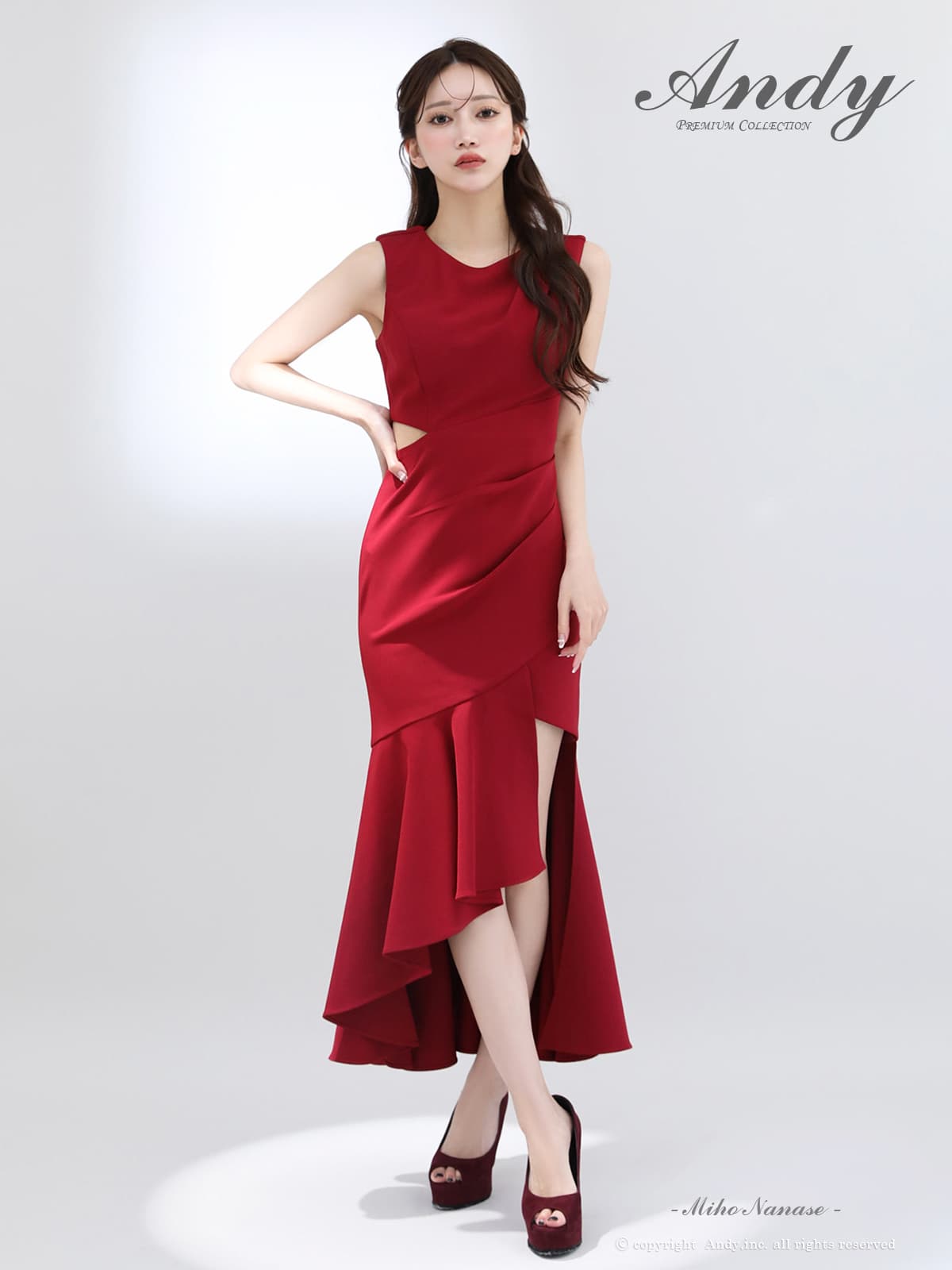 - > 【ANDY/アンディ】ウエストカット/ アシンメトリー/ ノースリーブ / フリル/ テールカット/タック/ ミディアムドレス/ キャバドレス[OF05]