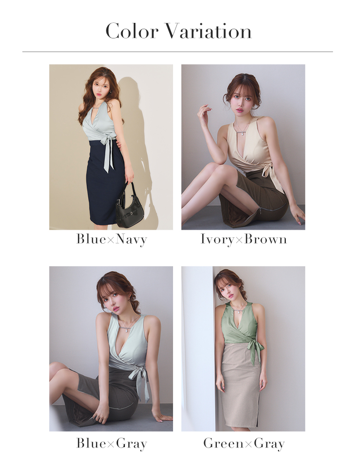 XSサイズあり【Veautt/ヴュート】【OF05】ウエストクロス/ バストタック/ リボン/ バイカラー/ チェーン/ サイドファスナー/ タイト/ ミディアムドレス/ キャバドレス [VT032601-BLxNV-S260123]