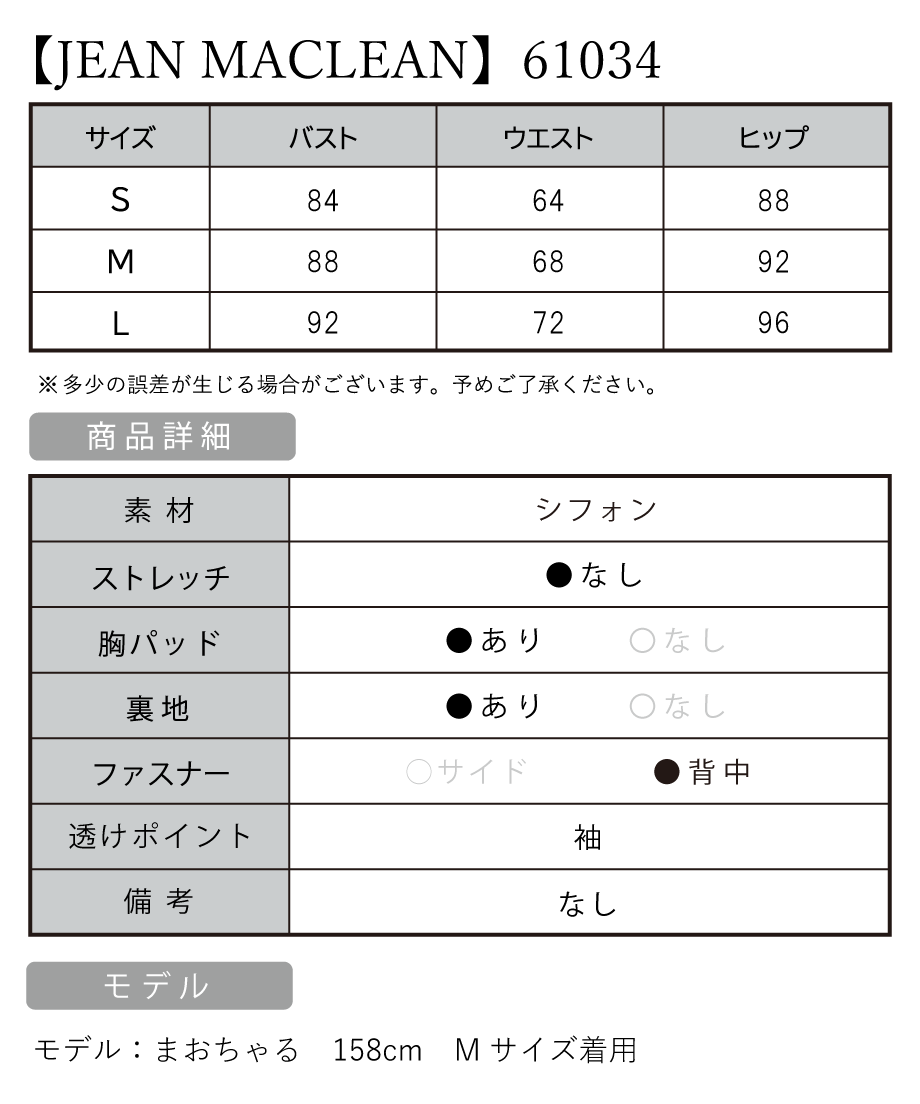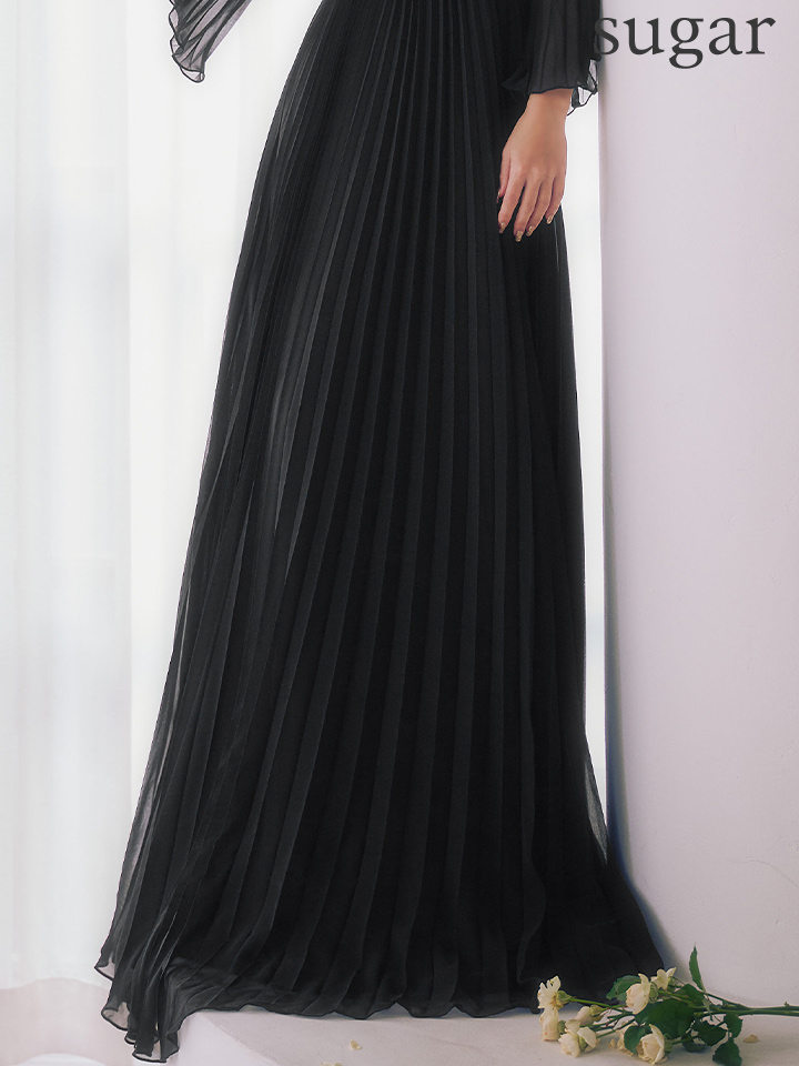 【予約商品/1月下旬発送予定】Lサイズあり【JEAN MACLEAN/ジャンマクレーン】シフォン/ プリーツ/ ロングスリーブ/ シアー/ フレア/ ロングドレス/ キャバドレス long[OF2A] [61034-JM-B-S260124]