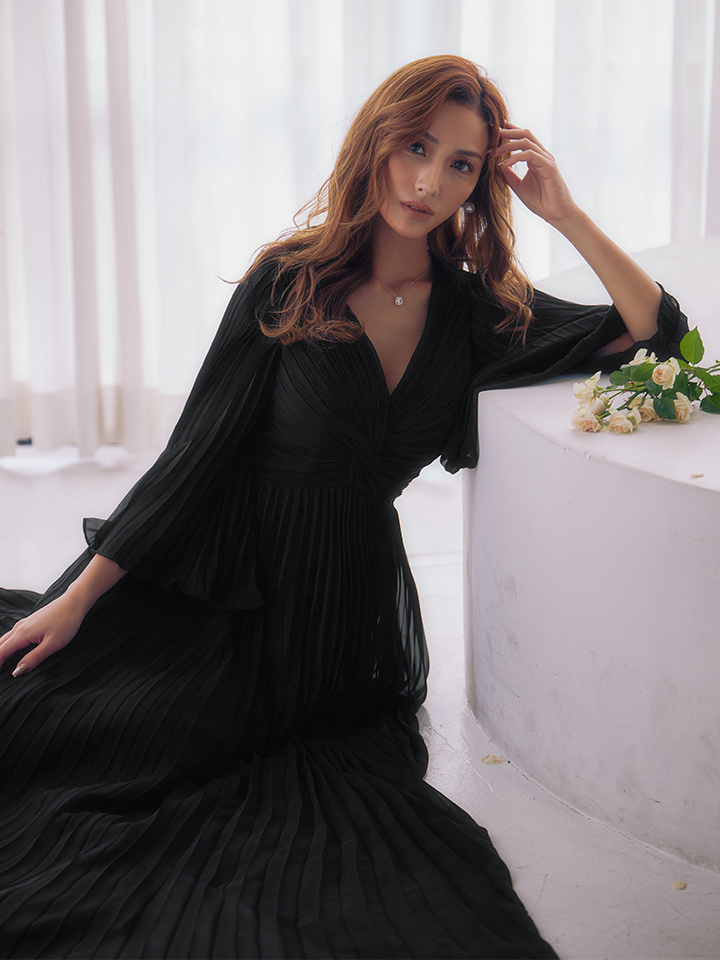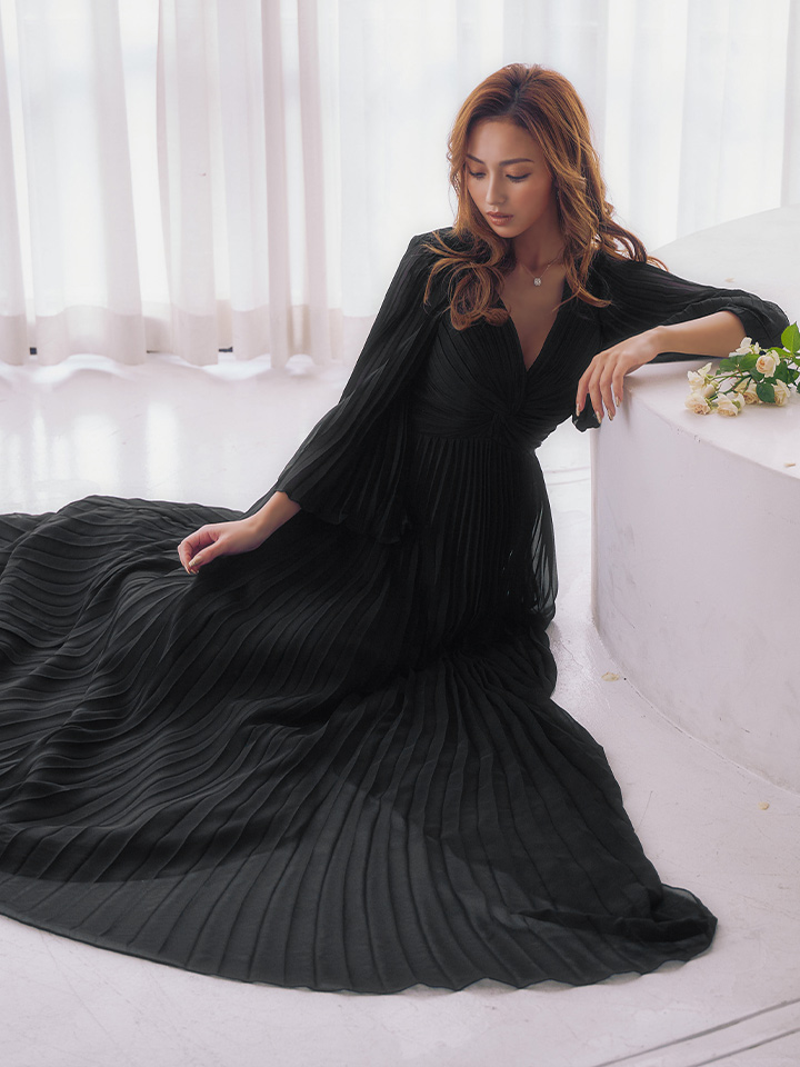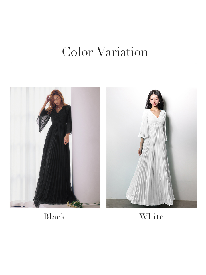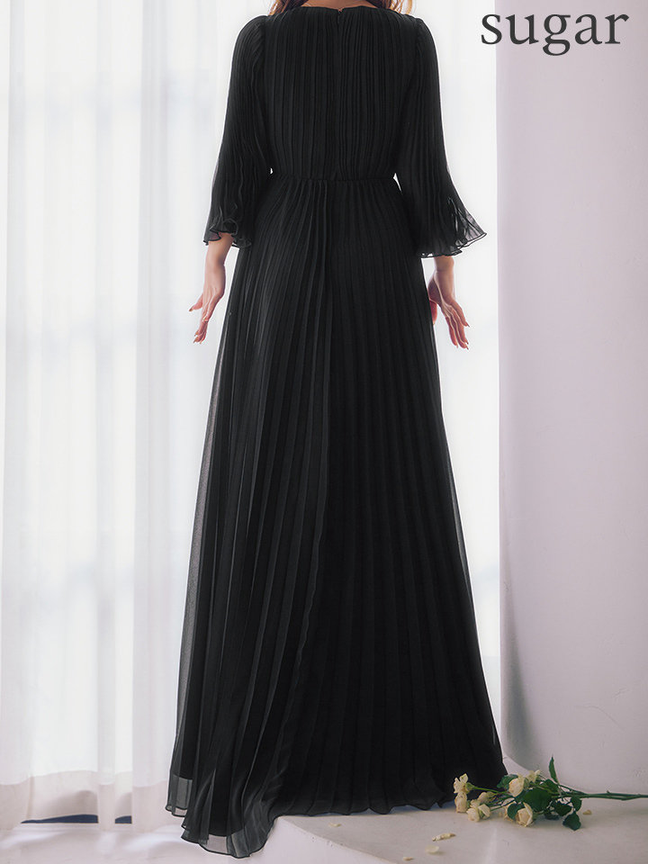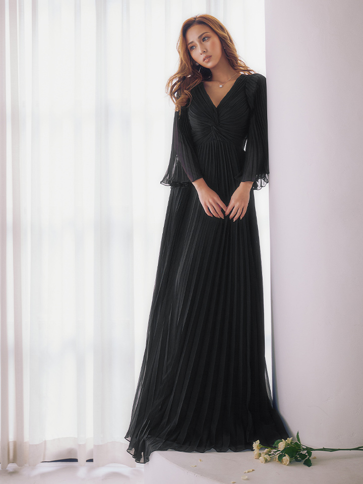 流れるようなプリーツが美しく揺れる、エレガントなロングドレス♡