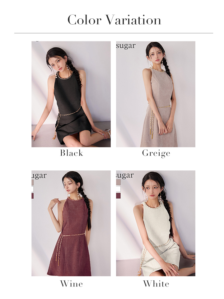 シンプルなワンカラーにチェーン装飾が上品なミニワンピース♡