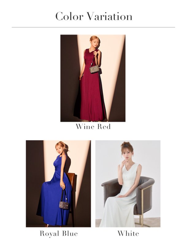 XS-Lサイズあり 【GINZA COUTURE/銀座クチュール】シンプル/ サテン/ Vネック/ ノースリーブ/ウエストマーク/ Aライン/ フレア/ ロングドレス/ キャバドレスlong[OF2] [LKC25182-WR-S2601]
