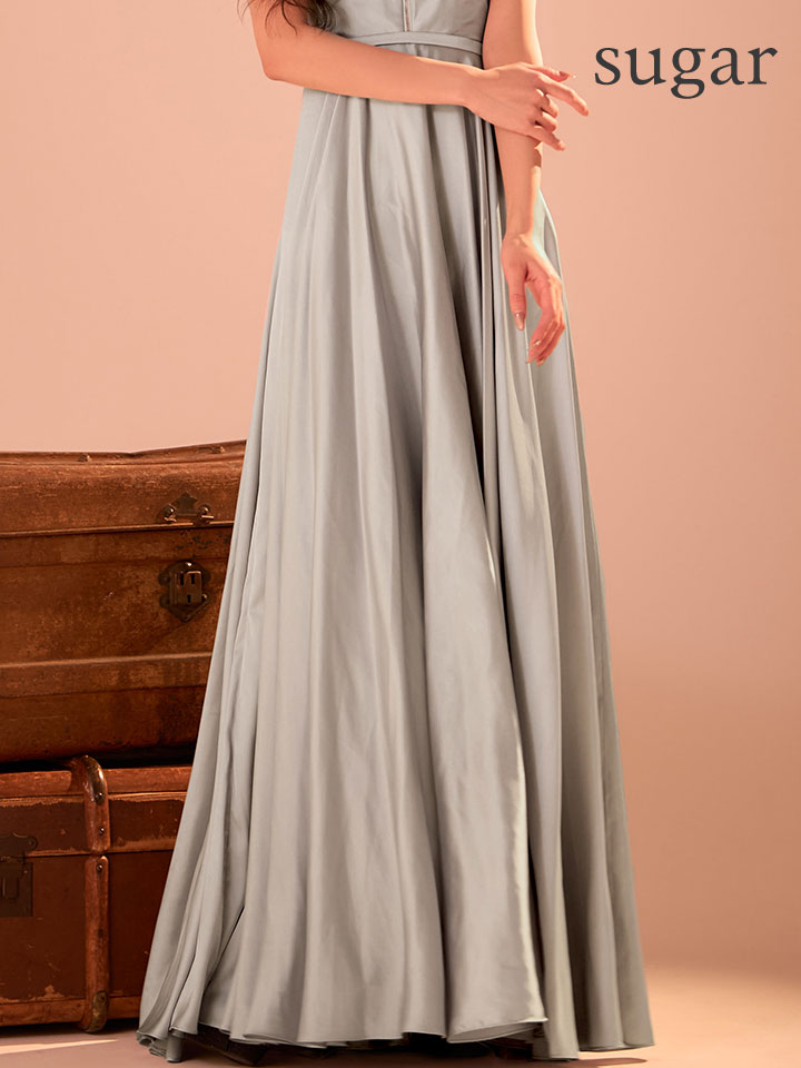 しっとりとした艶感のサテン生地がリュクスなフレアロングドレス♡