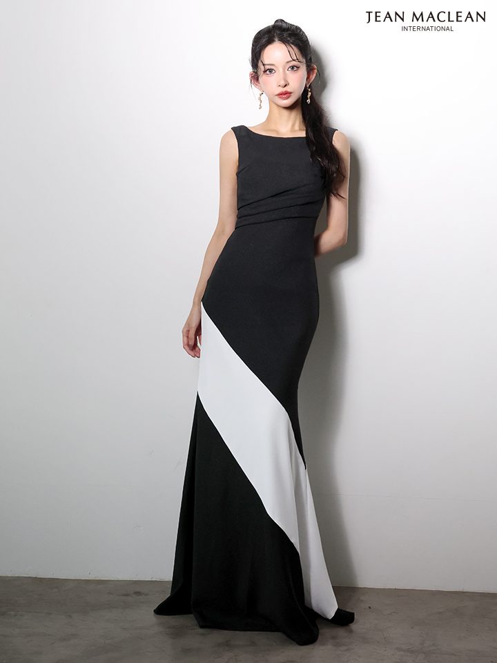 【予約商品/1月下旬発送予定】【JEAN MACLEAN/ジャンマクレーン】バイカラー/ タック/ ノースリーブ/ シンプル/ タイト/ ロングドレス/ キャバドレス long[OF2A] [61030-JM-W-2601]