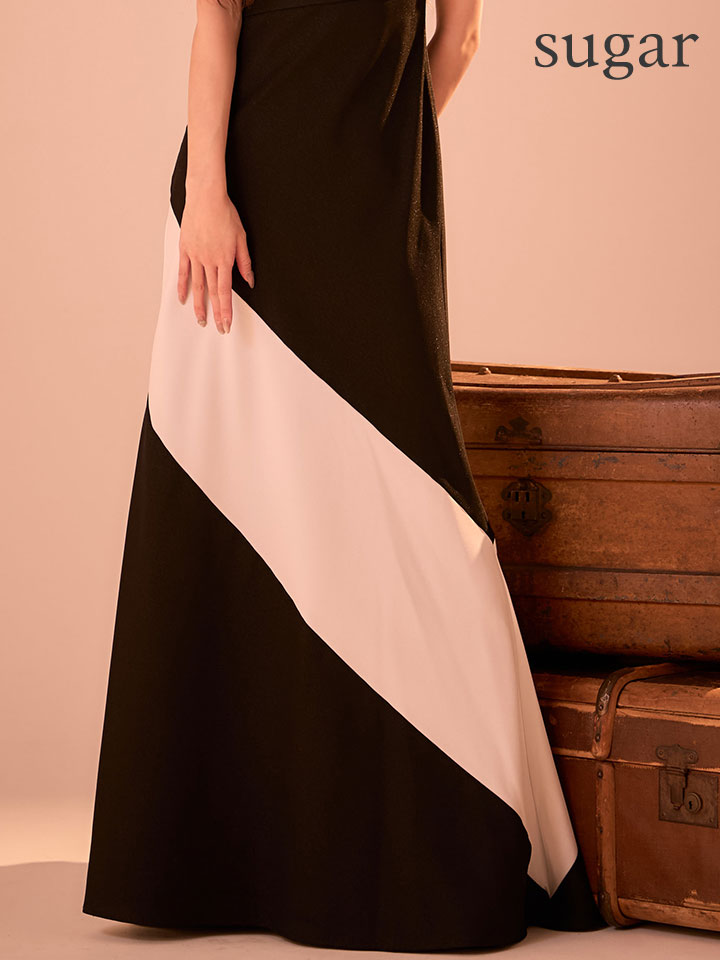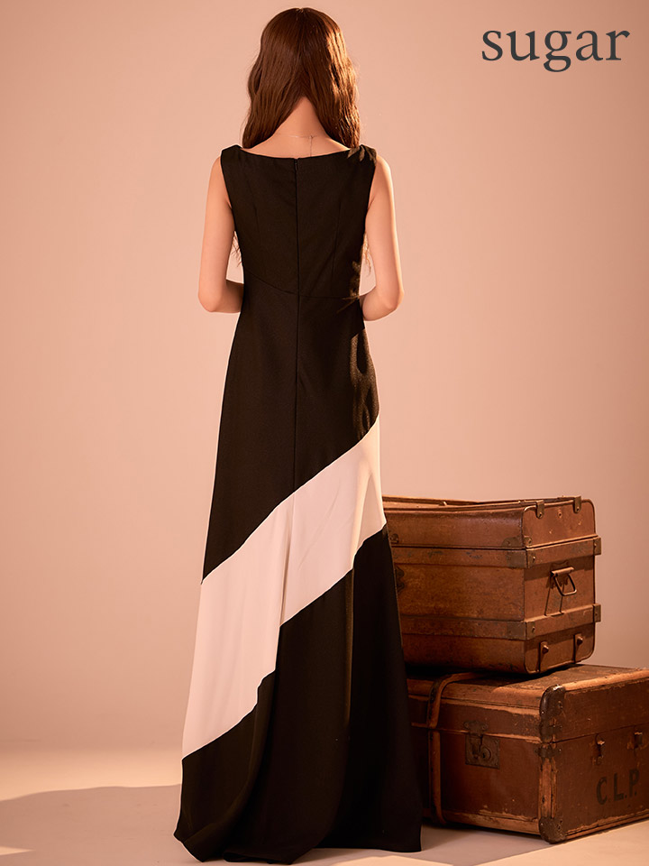 【予約商品/1月下旬発送予定】【JEAN MACLEAN/ジャンマクレーン】バイカラー/ タック/ ノースリーブ/ シンプル/ タイト/ ロングドレス/ キャバドレス long[OF2A]