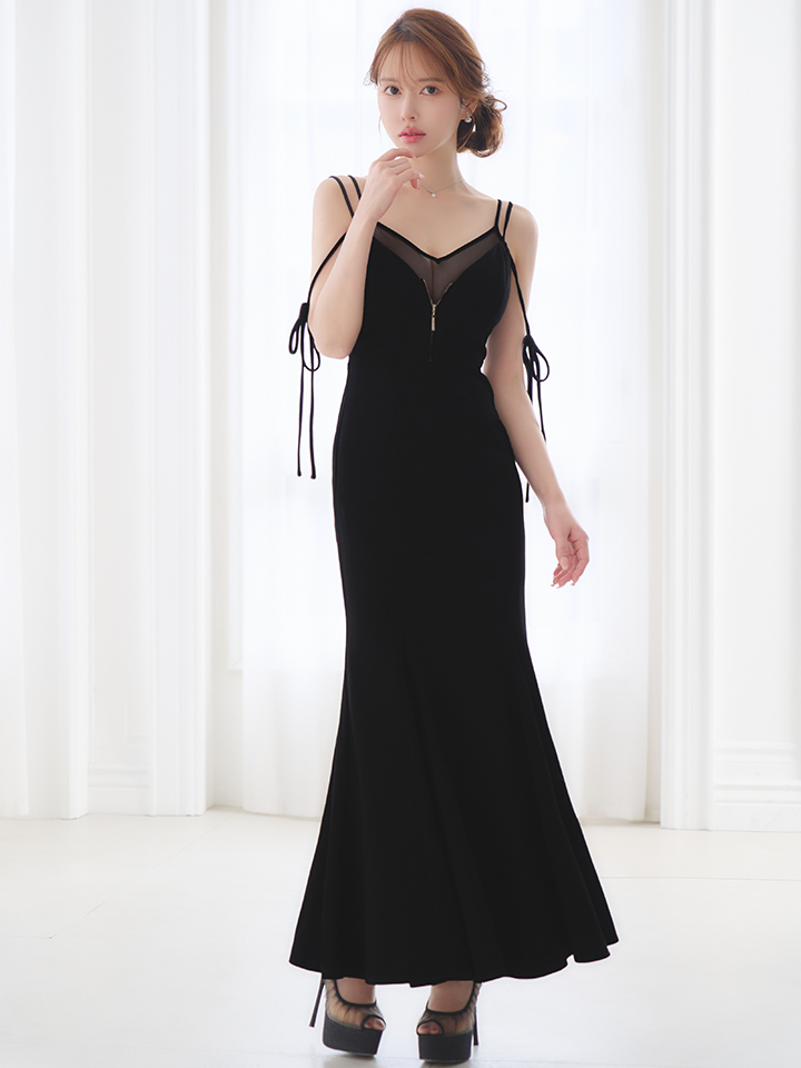 【Glossy/グロッシー】シアー/ ドッキング/ フロントジップ/ マーメイド/ ロング/ キャバドレスlong[OF08] [GL4341-B-S260124]