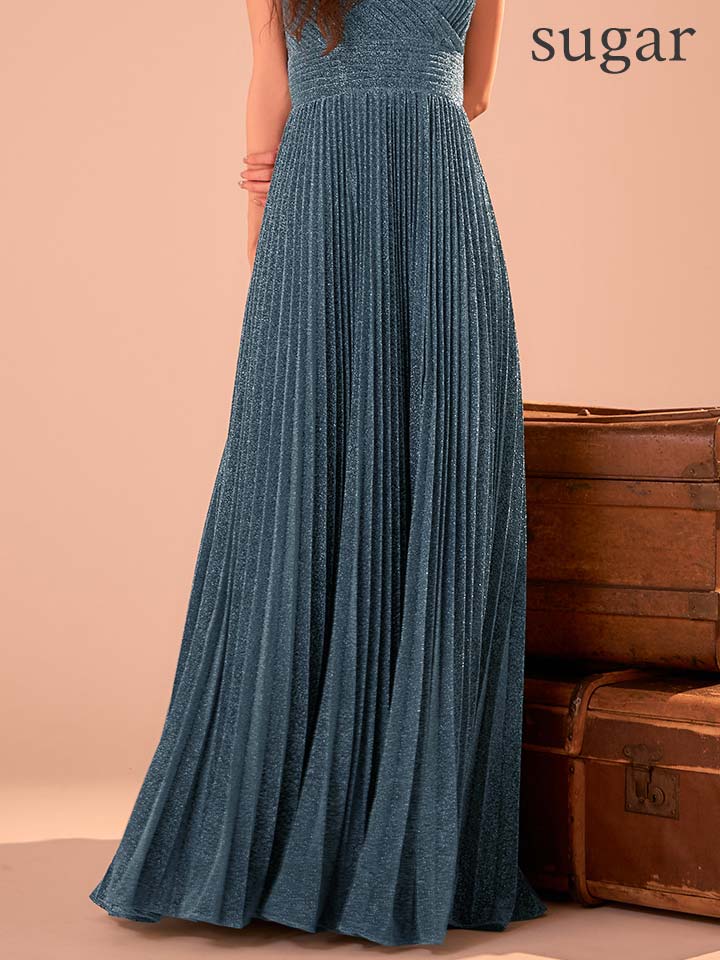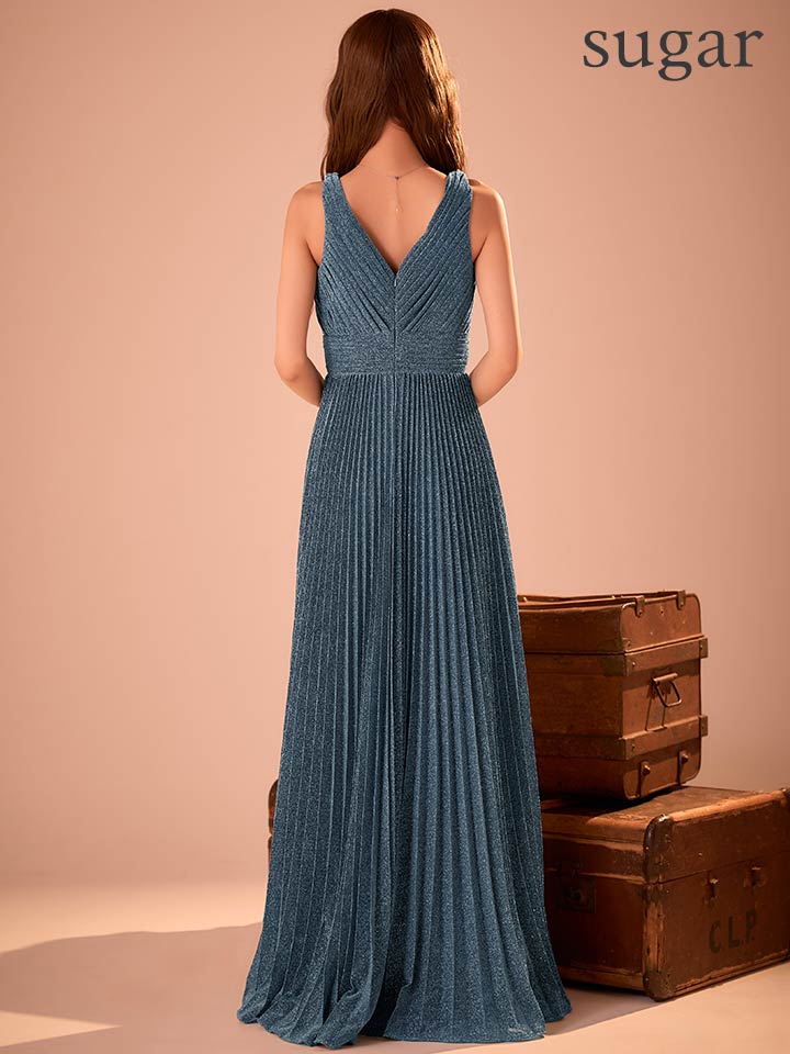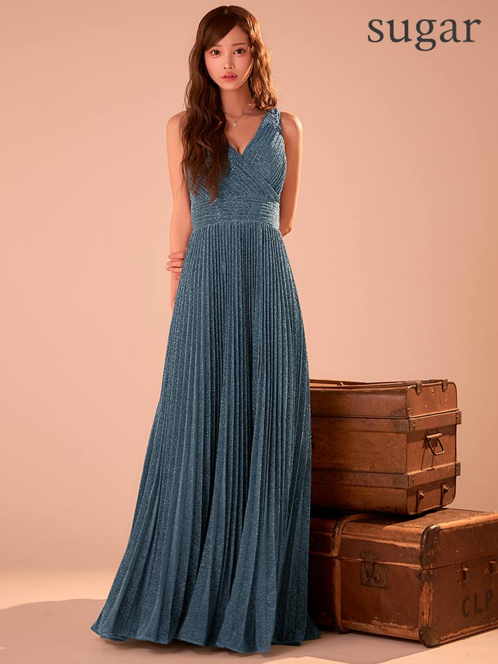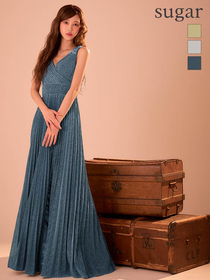 【IRMA/イルマ】プリーツ/ ストレッチ/ ラメニット/ ノースリーブ/ スリット/ フレア/ ロングドレス/ キャバドレス long[OF2A] [61029-IR-CHP-S260124]
