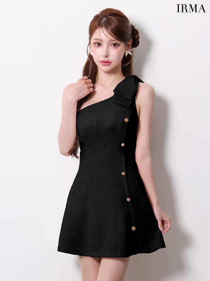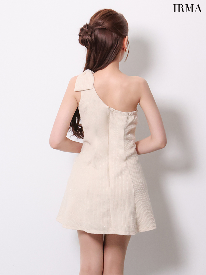 XSサイズあり【IRMA/イルマ】ラメ/ ショルダーリボン/ サマーツイード/ ワンショルダー/ ゴールドボタン/ フレア/ ミニドレス/ キャバドレス[OF2A] [61017-IR-B-2601]