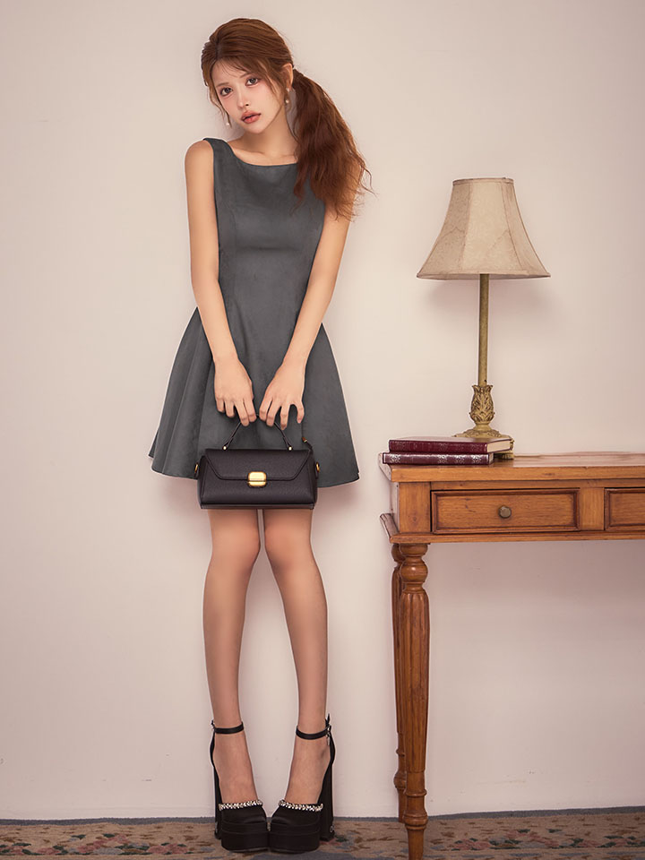 大胆なバックオープンデザインで後ろ姿を魅力的に演出するフレアミニドレス♡
