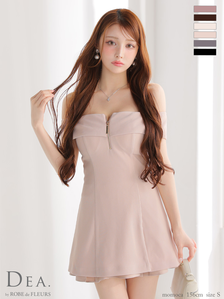 XSサイズあり【DEA./ディア】バストジップ/ オフショル/ セットアップ/ フレア/ ミニドレス/ キャバドレス[OF08] [DE4217-DusP-S260126]