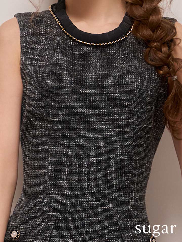 - > XS-Lサイズあり【GINZA COUTURE/銀座クチュール】ツイード/ ノースリーブ/ ビジューボタン/ ネックチェーン/ Aライン/ フレア/ ミニドレス/ キャバドレス[OF2]