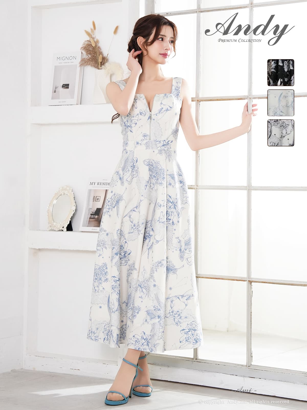 【ANDY/アンディ】エレガントな総柄が視線を集めるフレアロングドレス♡