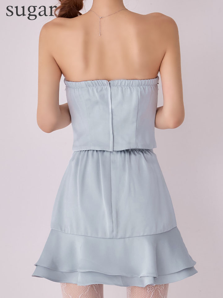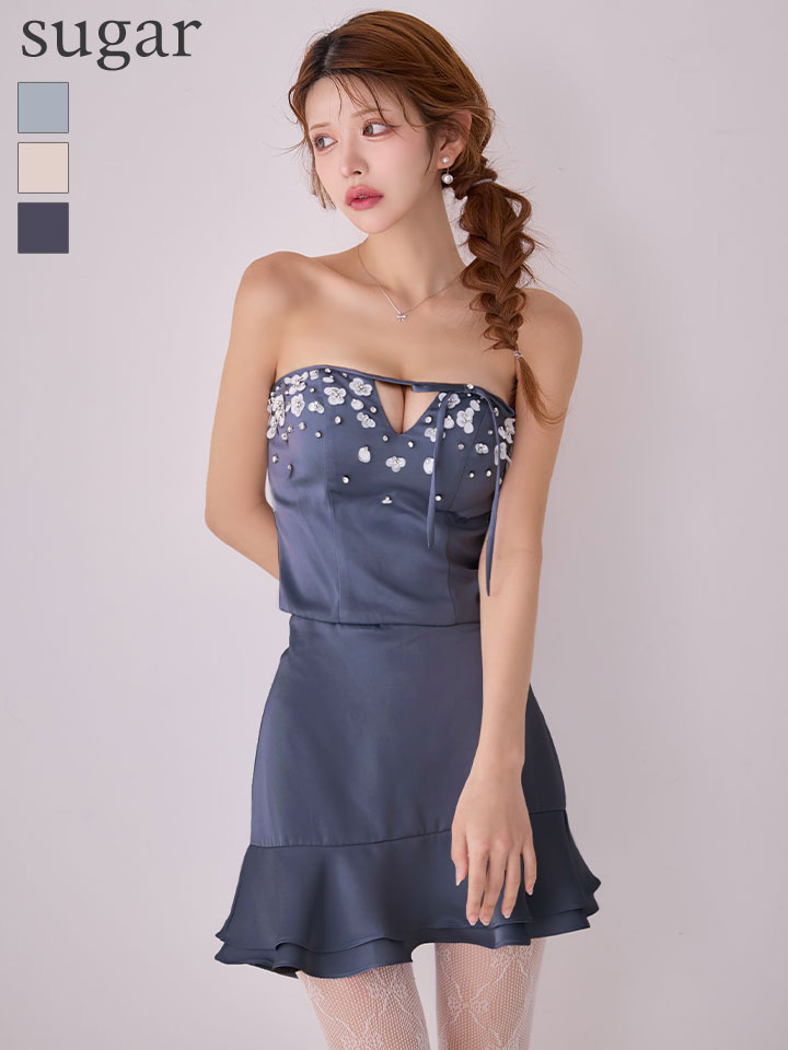 - > XSサイズあり【ANGEL R/エンジェルアール】ベアトップ/ バストカット/ リボン/ フラワービジュー/ サテン/ セパレート/ フレア/ マイクロミニドレス/ キャバドレス[OF2]