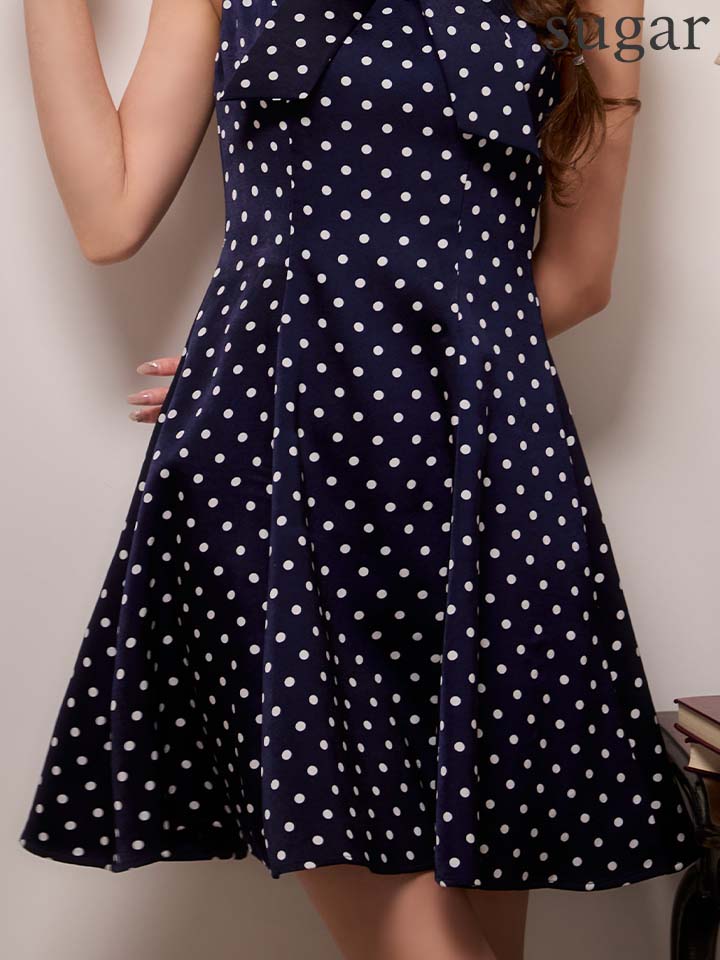 XS-Lサイズあり【ERUKEI エルケイ】ドット/ ノースリーブ/ プチハイネック/ リボン/ Aライン/ ワンピース/ ミニドレス/ キャバドレス[OF2]