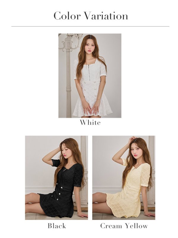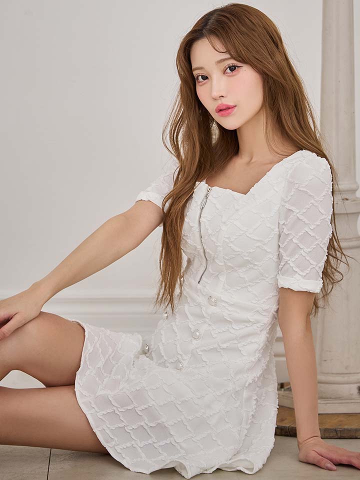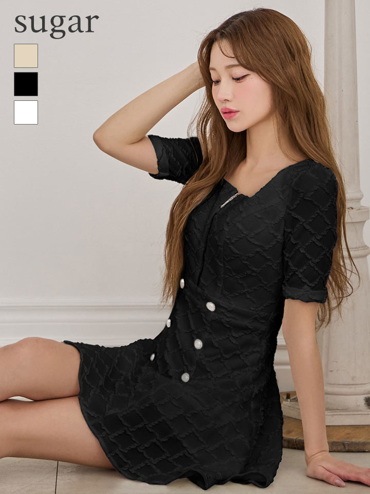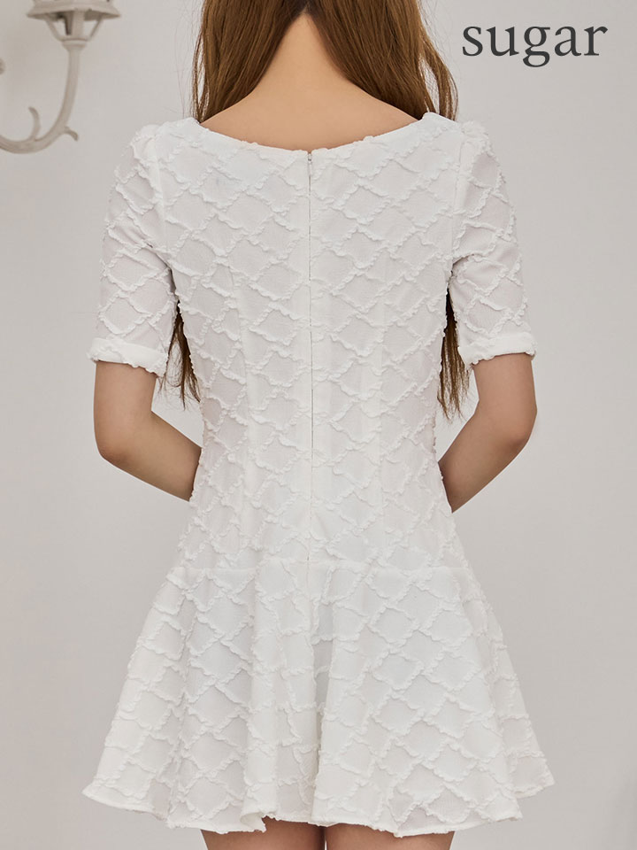 - > XSサイズあり【IRMA/イルマ】ダイヤ柄/ ジャガード/ 袖あり/ スクエアネック/ パールボタン/ 半袖/ ハイウエスト/ フレア/ ミニドレス/ キャバドレス[OF2A]