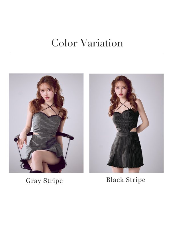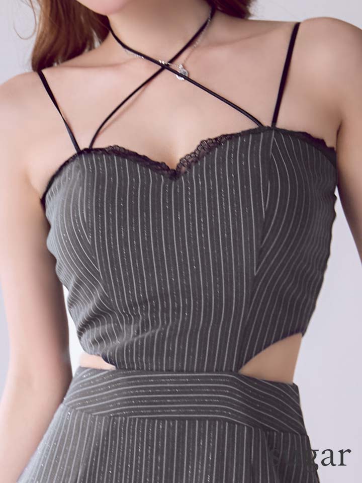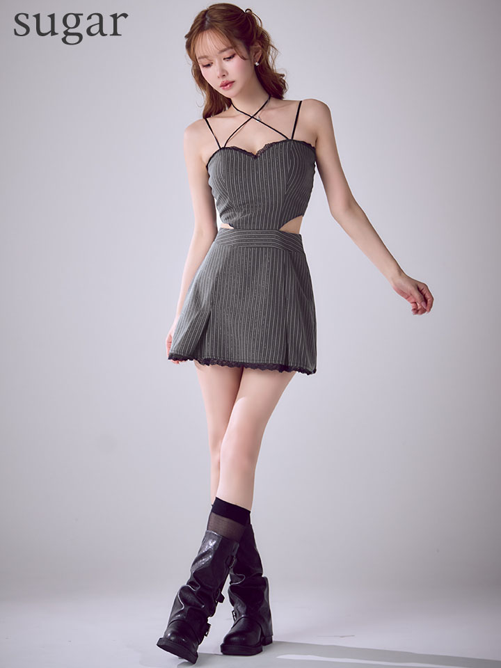 XSサイズあり【IRMA/イルマ】スカラップレース/ リボンチョーカー/ キャミソール/ ウエストカットアウト/ フレア/ ミニドレス/ キャバドレス[OF2A] [55110-IR-Bstripe-S260129]