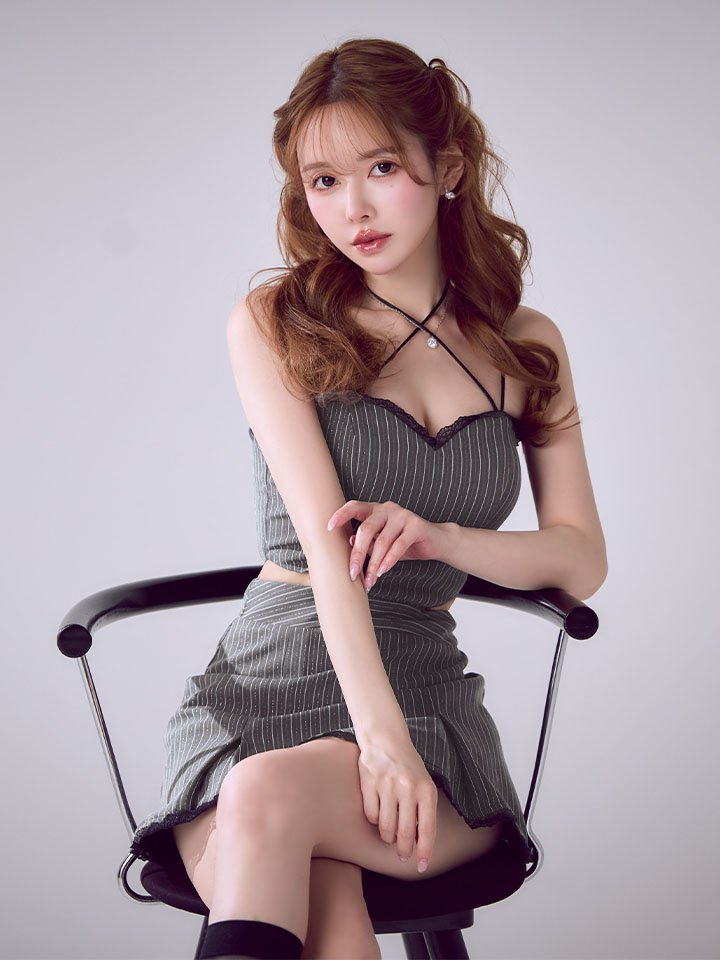 華奢な肩紐とチョーカーがデコルテを強調し、魅力的に演出します。