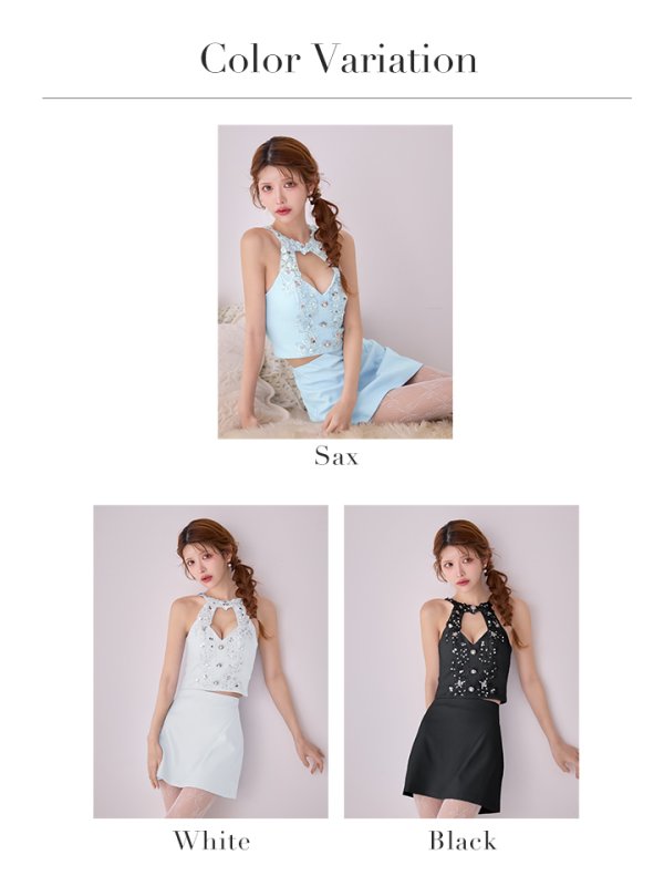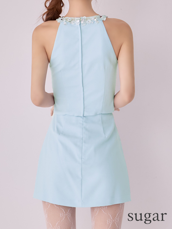 XSサイズあり【ANGEL R/エンジェルアール】ホルターネック/ ボタン/ フラワーレース/ ビジュー/ セパレート/ マイクロミニドレス/ キャバドレス[OF2] [AR25306-SAX-S260128]