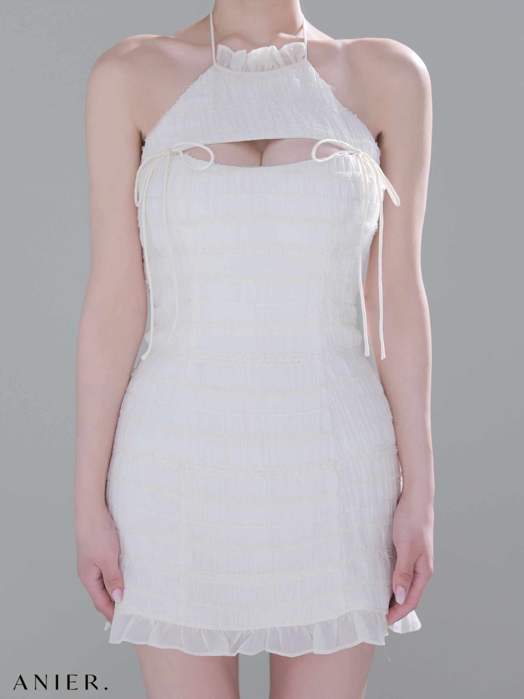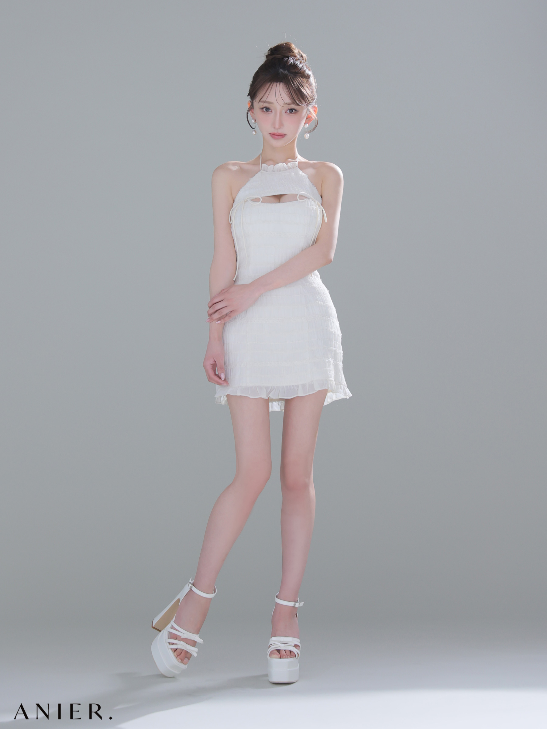 - > 【予約商品/1月下旬発送予定】XSサイズあり【ANIER./アニエル】【ROBE de FLEURS/ローブドフルール】Chiffon halter neck bust cutout tight mini dress/ シフォン/ ホルターネック/ バストカットアウト/ タイト/ ミニドレス/ キャバドレス[OF08]