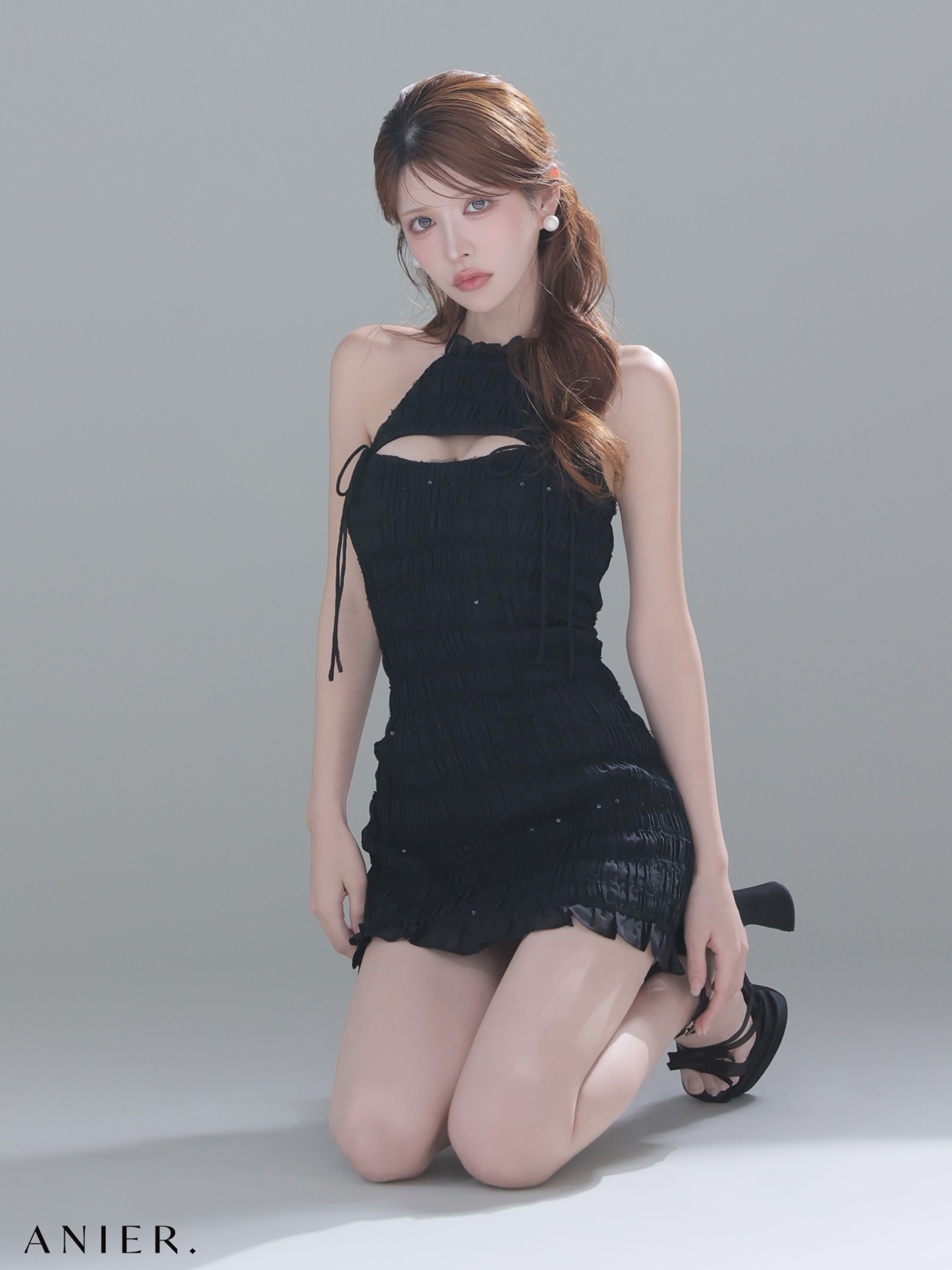 【予約商品/1月下旬発送予定】XSサイズあり【ANIER./アニエル】【ROBE de FLEURS/ローブドフルール】Chiffon halter neck bust cutout tight mini dress/ シフォン/ ホルターネック/ バストカットアウト/ タイト/ ミニドレス/ キャバドレス[OF08] [ANIER4061-B-S260128]