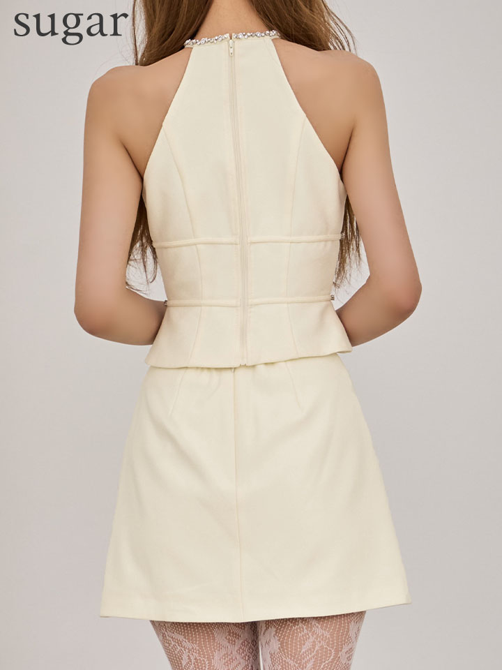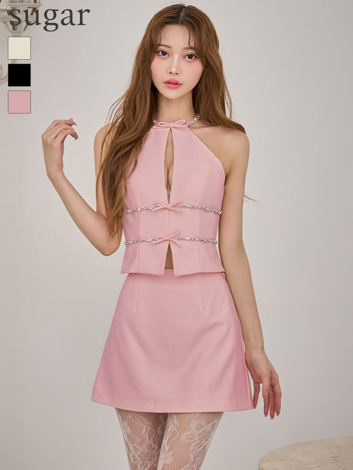 - > 【予約商品/1月下旬発送予定】XSサイズあり【ROBE de FLEURS/ローブドフルール】ラメ/ ツイル/ ビジュー/ リボン/ ホルターネック/ セットアップ/ ミニドレス/ キャバドレス[OF08]