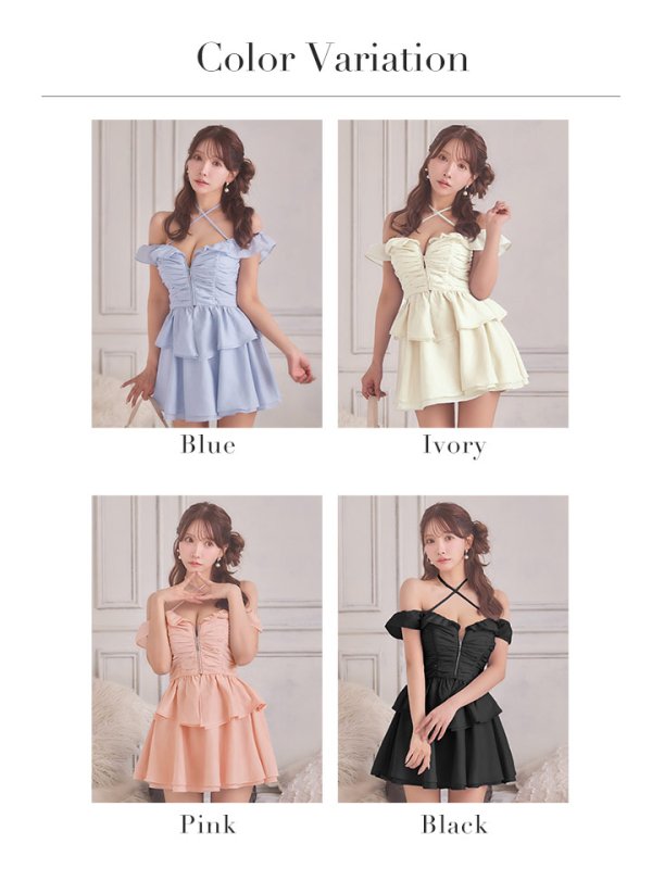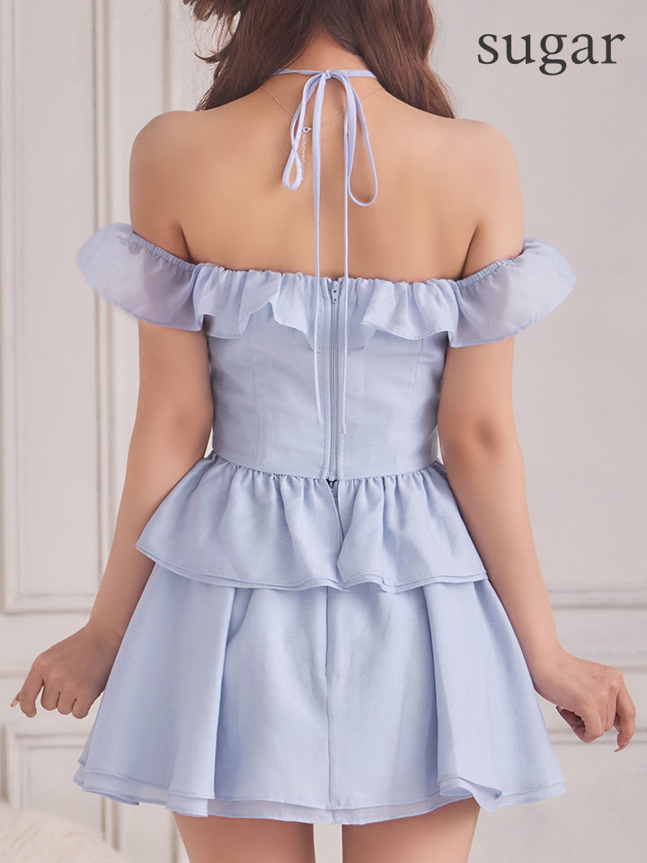 - > 【予約商品/1月下旬発送予定】XSサイズあり【ROBE de FLEURS/ローブドフルール】フリル/ オフショル/ リボン/ セットアップ/ フレア/ ミニドレス/ キャバドレス[OF08]