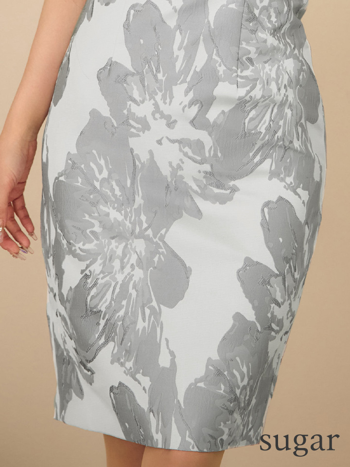 XS-Lサイズあり【ERUKEI エルケイ】ノースリーブ/ 胸元スリットカット/ 花柄/ ジャガード/ タイト/ ミディアムドレス/ キャバドレス[OF2] [LKE25098-GY-S2601]
