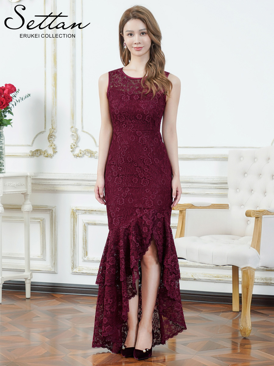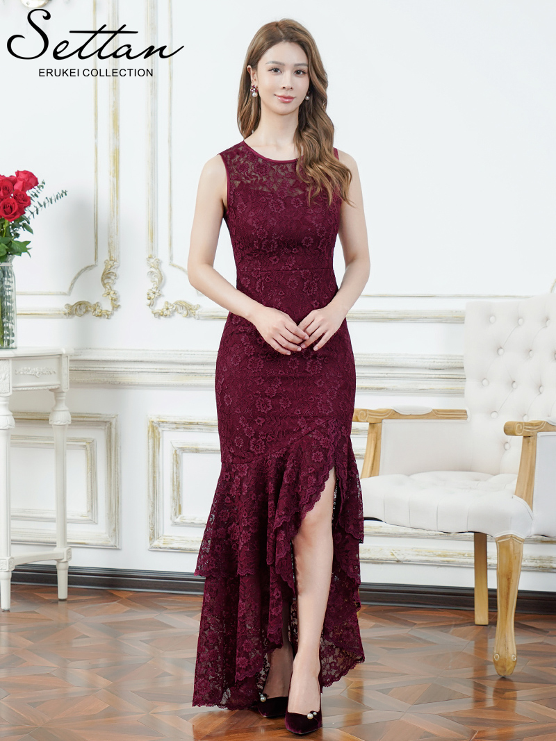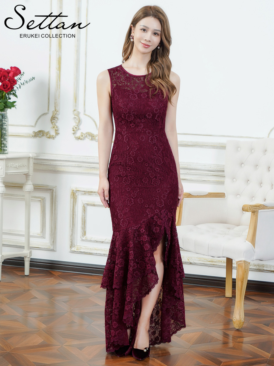 XS-Lサイズあり【SETTAN/セッタン】総レース/ シアー/ ノースリーブ/ エレガント/ スリット/ 変形ヘム/ フィッシュテール/ タイト/ マーメイド/ ロングドレス/ キャバドレス long[OF2]