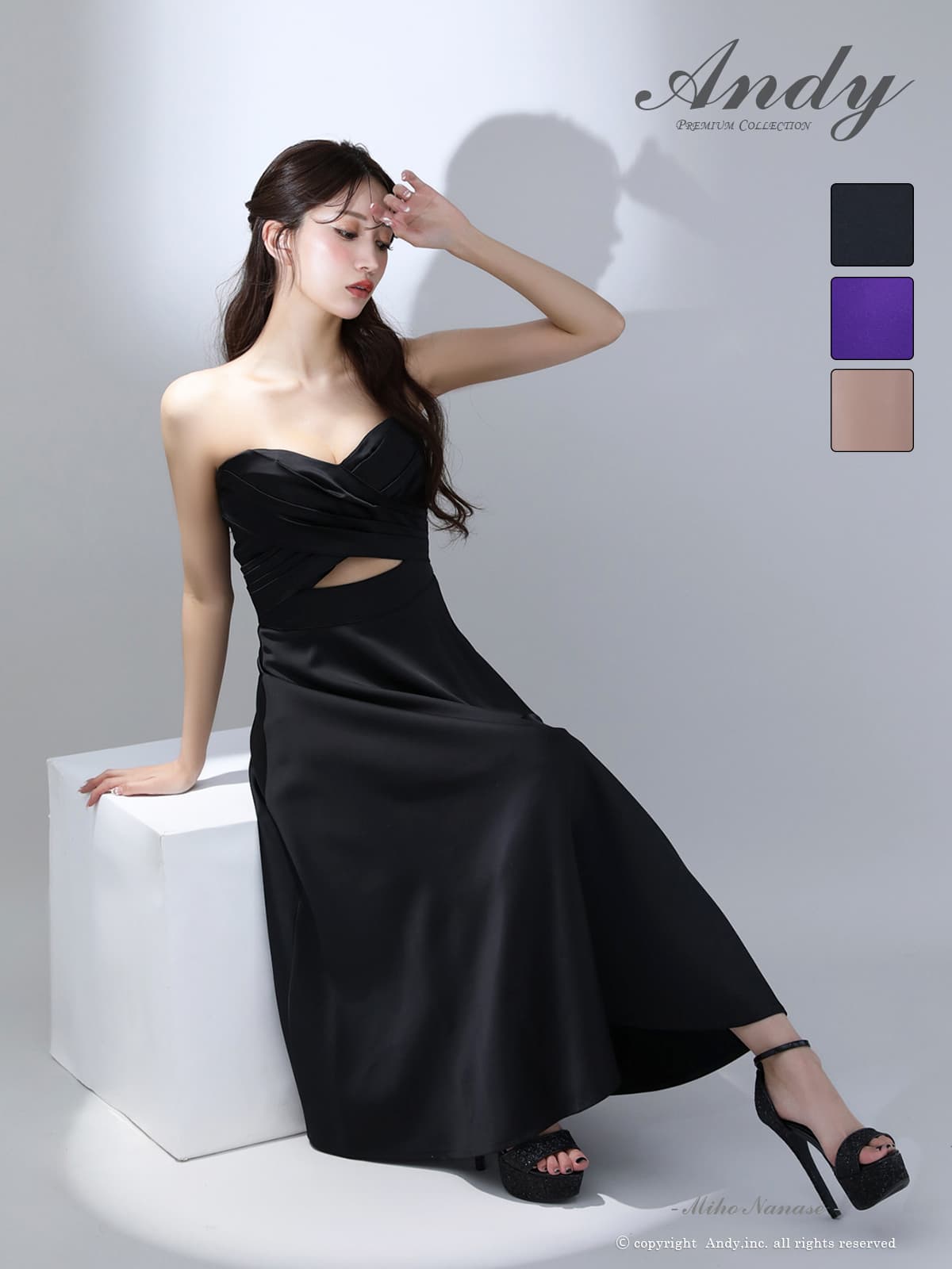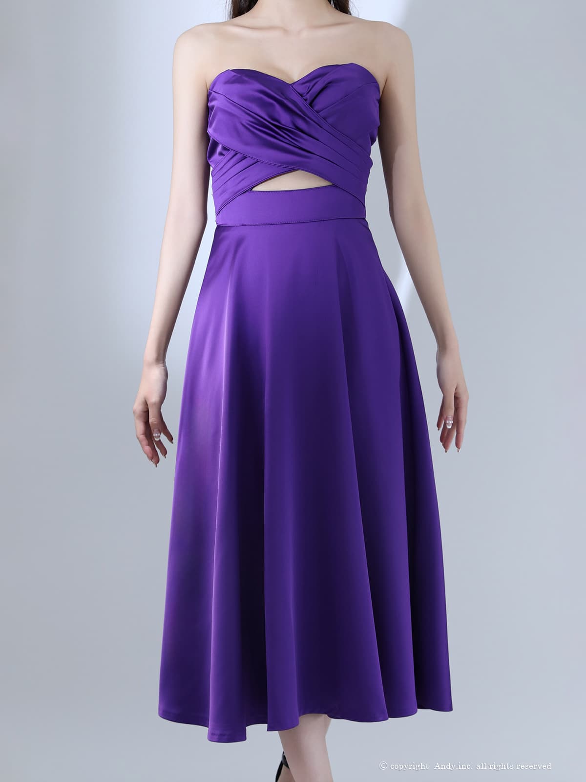 - > XSサイズあり【ANDY/アンディ】シンプル/ ワンカラー/ ベア/ バストクロス/ ウエストカット/ Aライン/ ミモレ丈/ フレア/ ミディアムドレス/ キャバドレス[OF05]