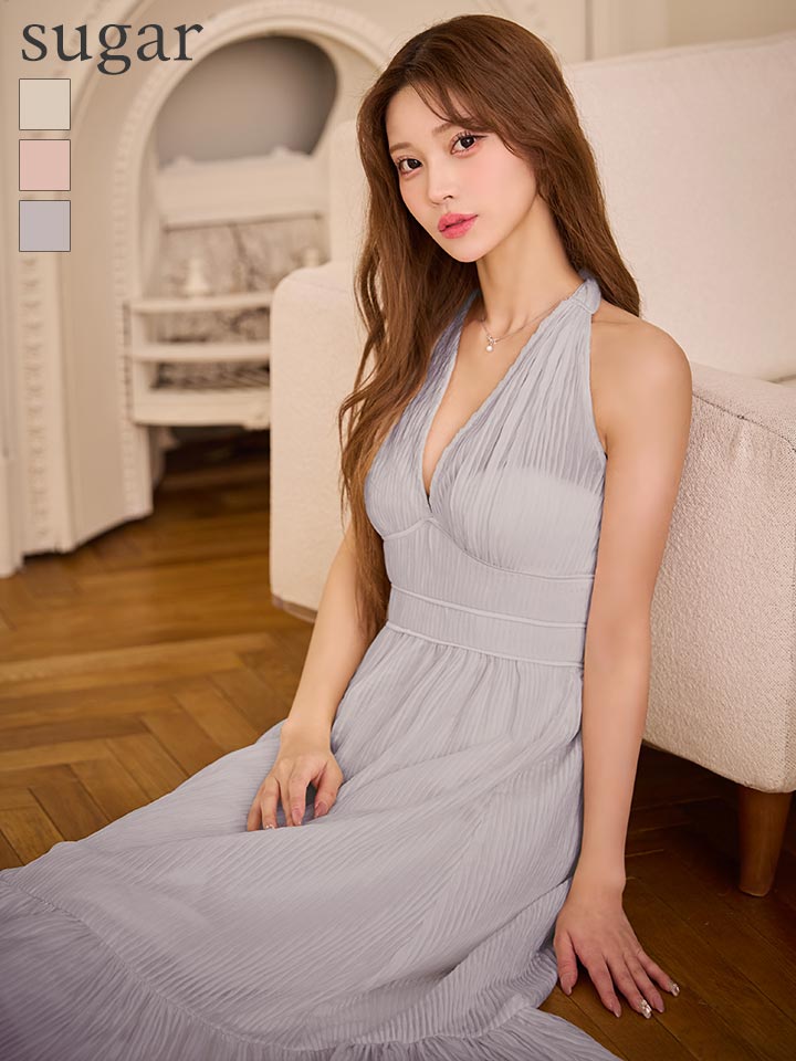XS-Lサイズあり【DEA./ディア】プリーツ/ シフォン/ ホルターネック/ ロングドレス/ キャバドレス long[OF08]