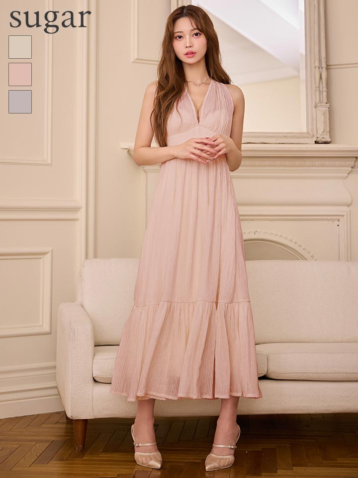 XS-Lサイズあり【DEA./ディア】プリーツ/ シフォン/ ホルターネック/ ロングドレス/ キャバドレス long[OF08] [DE4659-PBE-S260131]